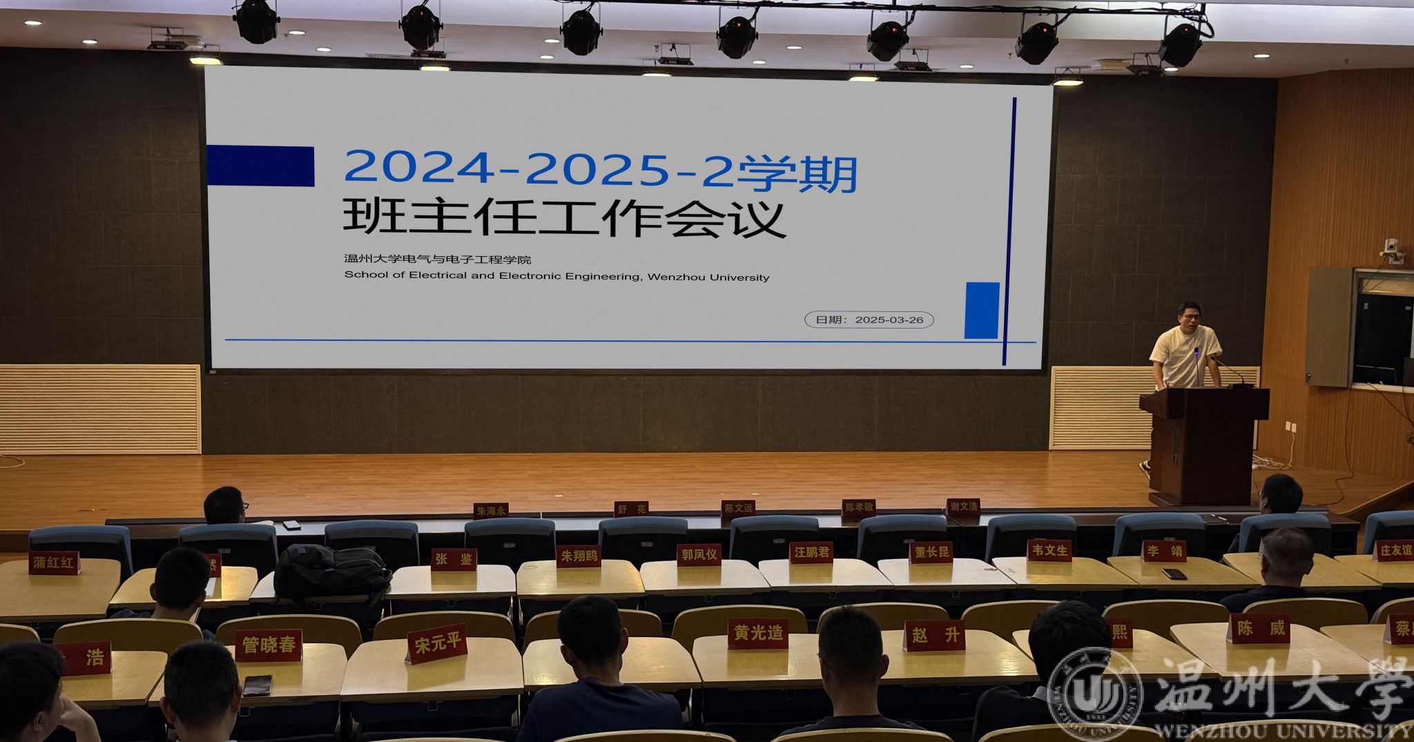 3月26日下午,3044永利集团在岩松堂步青厅成功召 2024-2025-2学期班主任工作会议。学院全体本科生、研究生班主任齐聚一堂,公司党委副书记翁浩出席本次会议,会议由学工办主任廖晓安主持。