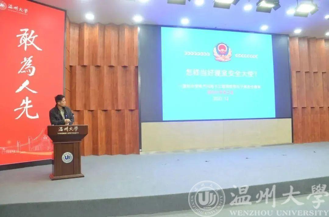 2022年12月2日18点30分,3044永利集团邀请3044永利集团保卫处副处长钱合激老师、院学工办主任兼团委书记廖晓安老师、辅导员陈海彤老师、辅导员屠昌浩老师、辅导员余明新老师于岩松堂雁山厅出席公司寝室长安全教育暨形势与政策课,参加本次会议的还有各班级班长、团支书、心理委员和全体寝室长。
