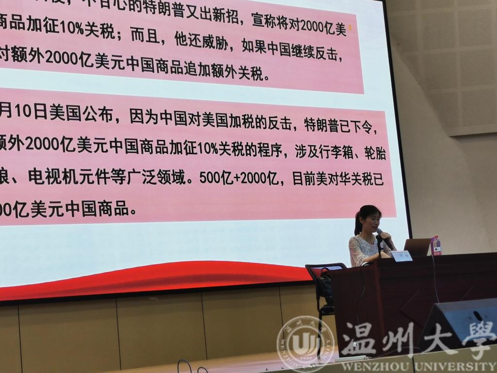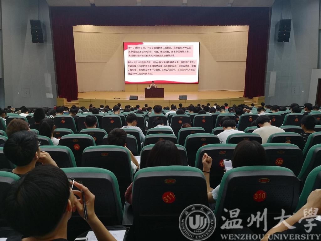 何老师讲座高屋建瓴、内容丰富、金句频出,引来了同学们的阵阵喝彩和掌声。该讲座为同学们正确认识中美贸易摩擦的成因及未来关系发展趋势有很大的帮助,他们纷纷表示满载收获,意犹未尽!同时也燃烧起了同学们内心深处的爱国热情,得到了同学们的一致好评,同学们纷纷表示:美国挑起的贸易摩擦违背历史潮流,不得民心,我们要保持定力,踏实学习,努力做好自己的事!