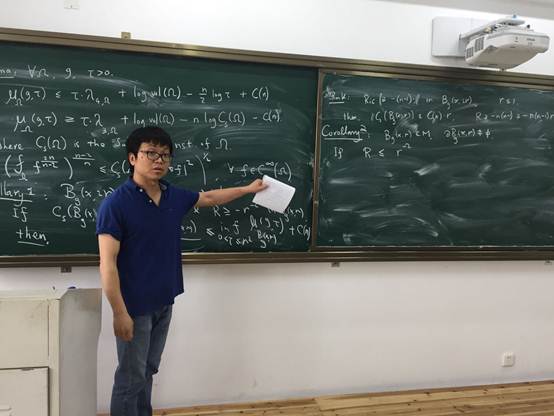 报告中张老师详细介绍了他和田刚院士合作的工作之一,Ricci流中局部约化体积定理的证明及相关问题,报告深入浅出,给出了问题的背景,详细探讨了证明中的若干技术细节问题。公司几何方向的教师和研究生参加了讲座。