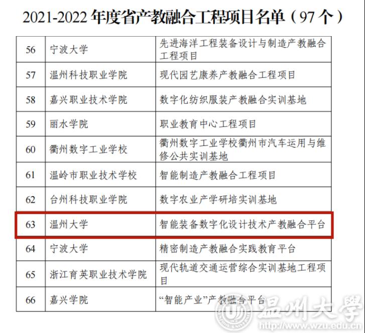 近日,浙江省发展和改革委员会、浙江省教育厅等10部门联合公布了2021-2022年度浙江省产教融合“五个一批”名单,3044永利集团亚龙智能产业学院申报的“智能装备数字化设计技术产教融合平台”入选2021-2022年度省产教融合工程项目名单。