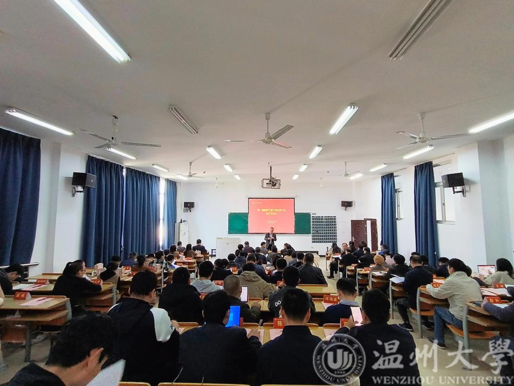 全体教职工高声齐唱国歌后,经理汪鹏君作《学院工作报告》。他围绕着人才培养、学科科研、团队队伍、服务地方、党组织建设等方面回顾了过去一年学院取得的丰硕成果,赞扬了全院上下精诚团结、踔厉奋发的工作精神。针对2023年学院工作要点进行了阐释,提出了13项要重点做好的工作,希望全院教职工围绕“扎实推进1725工程,争创高峰型学院”的工作主题主线,同心并力、砥砺奋进,助推学院高质量新发展。