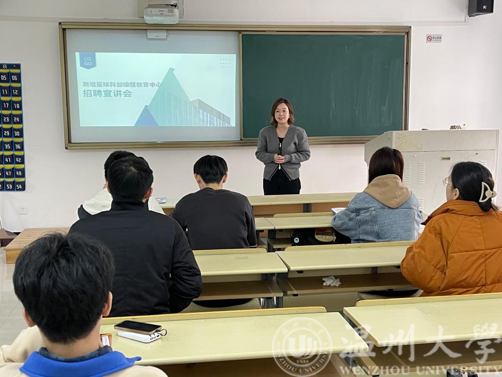 2023年3月26日下午14:00,斯坦星球人事主管Alice老师来公司1A113开展招聘宣讲会活动。就业辅导员屠昌浩以及十余名本科生与研究生参加了本次宣讲会。
