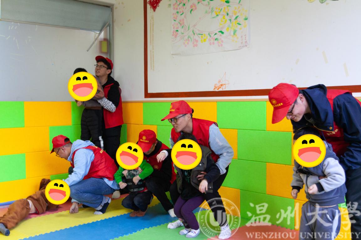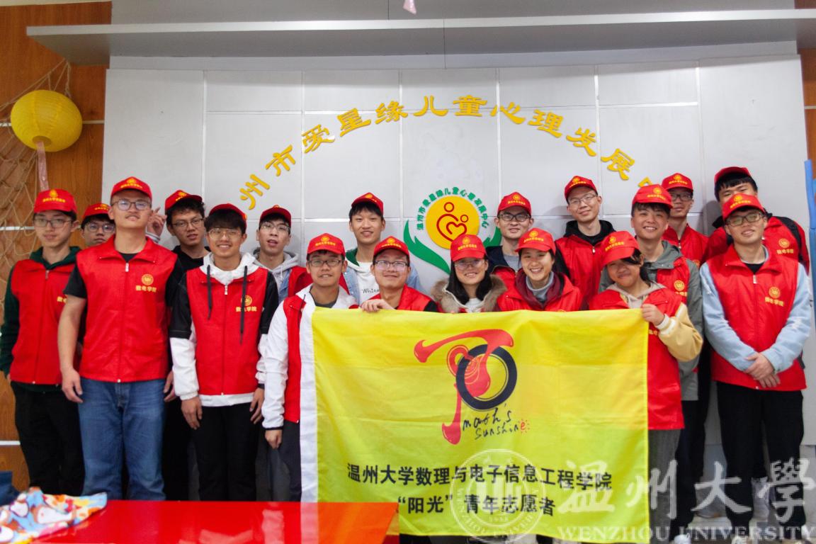 2019年4月4日,3044永利集团数理与电子信息工程学院“阳光”青年志愿者中心组织了20名志愿者前往鹿城区爱星缘儿童心理发展中心,为自闭症儿童带去了欢乐与陪伴。
