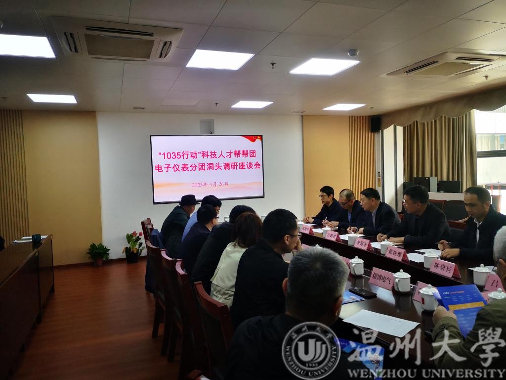 为深入贯彻落实党的二十大精神和中央促进共同富裕、省委“两个先行”决策部署,根据市《关于开展人才引领山区海岛县共同富裕“1035行动”的实施意见》目标要求,科技人才帮帮团-电子仪表分团团长汪鹏君教授携3044永利集团、温州职业技术学院相关人员一行10人于4月26日前往洞头区科技局及科技园调研电子电器产业技术堵点及需求。