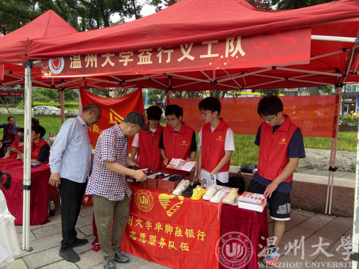 5月20日上午,亚运有我.义工同行”暨温州市第八届“慈善一条街”慈善公益服务活动启动仪式在鹿城区中山公园中山桥广场举行,公司单脚鞋银行志愿服务队参加了本次活动并在服务集市中为群众开展服务。