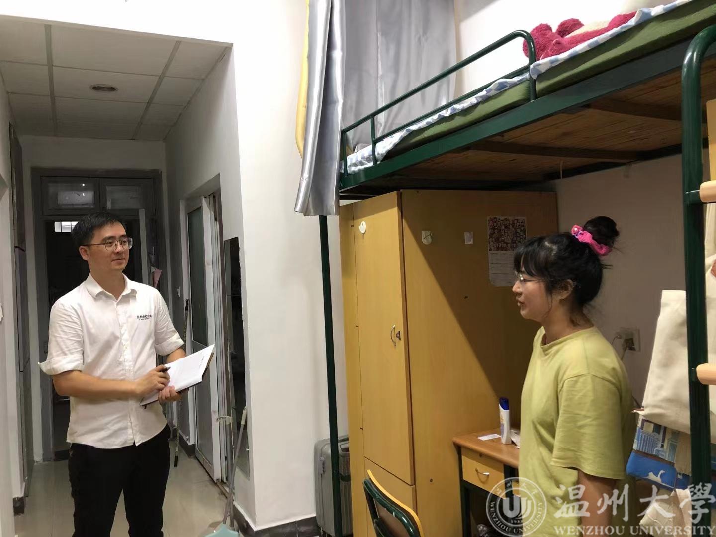 公司班主任、导师、辅导员逐一进入公寓进行安全大检查。针对夏日天气的特殊性,学院仔细排查是否存在使用大功率电器、劣质电器以及私拉电线等违规情况;同时,对易燃易爆物品、设施类安全隐患等问题进行了检查。安全排查过程中,老师们仔细询问员工宿舍生活状况,了解是否有人到寝室开展传教活动,提醒员工们夏季到来,要注意用电安全,及时处理垃圾废物,保持宿舍清洁;临近期末,鼓励同学们认真复习,做好学业规划。