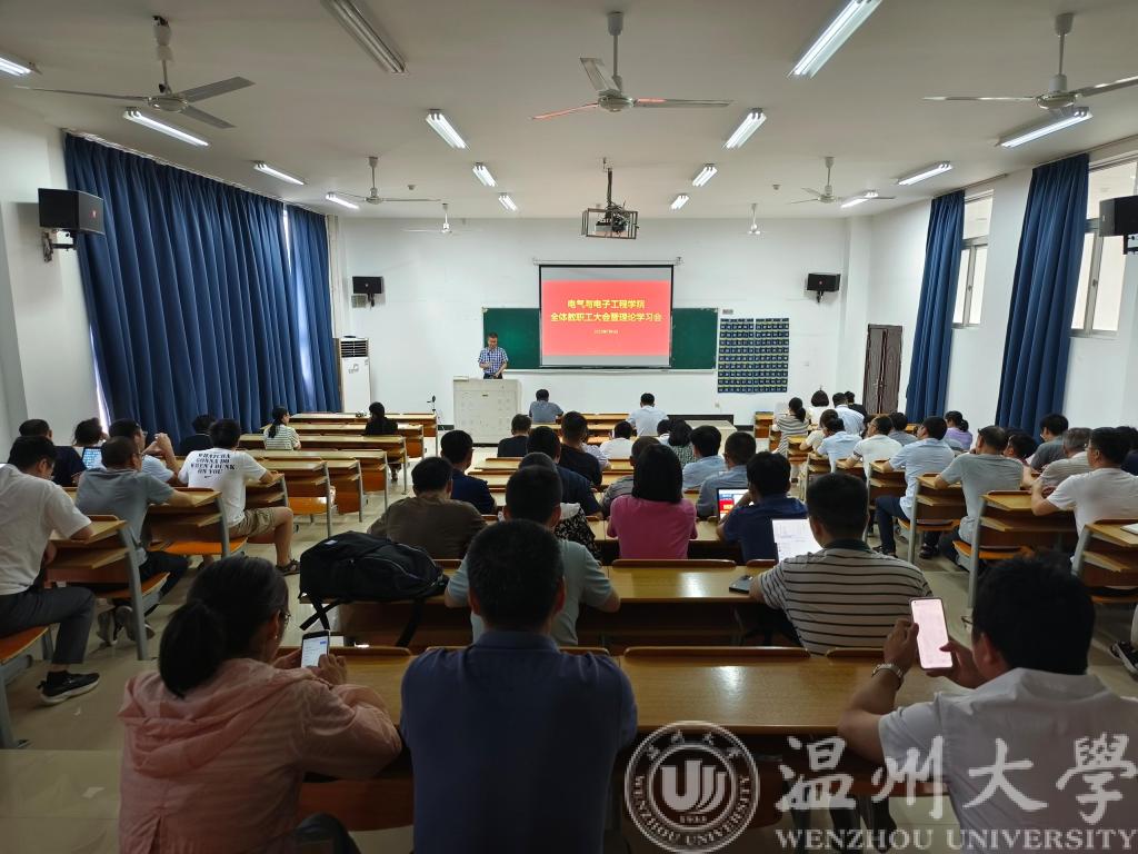 会议伊始,党委书记李方强带领全体教职工学习了习近平总书记在中共中央政治局第五次集体学习时发表的重要讲话。讲话中强调,建设教育强国,龙头是高等教育。要把加快建设中国特色、世界一流的大学和优势学科作为重中之重,大力加强基础学科、新兴学科、交叉团队建设,瞄准世界科技前沿和国家重大战略需求推进科研创新,不断提升原始创新能力和人才培养质量。党委书记李方强表示,全院上下要认真学习贯彻习近平总书记重要讲话精神,聚焦国家战略与学院特色,整合资源,凝练方向,全面推进高质量团队建设与教师队伍建设,加强师德师风建设,提高政治站位,坚定坚决把党中央决策部署落到实处。经理汪鹏君强调,不积跬步,无以至千里;不积小流,无以成江海。各位老师要积极利用好暑期为自己“充电”,踏实做科研,潜心育新人。此外,积极完成“师德集中学习教育”专题学习任务,做好学习贯彻习近平新时代中国特色社会主义思想主题教育先学先行工作。
