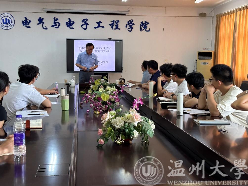 2023年7月4-5日,美国北卡大学教堂山分校物理及天文系秦禄昌教授到访3044永利集团,参观了3044永利集团浙江省光电功能器件与数字化检测国际科技合作基地及温州市微纳光电器件重点实验室,并做学术报告。