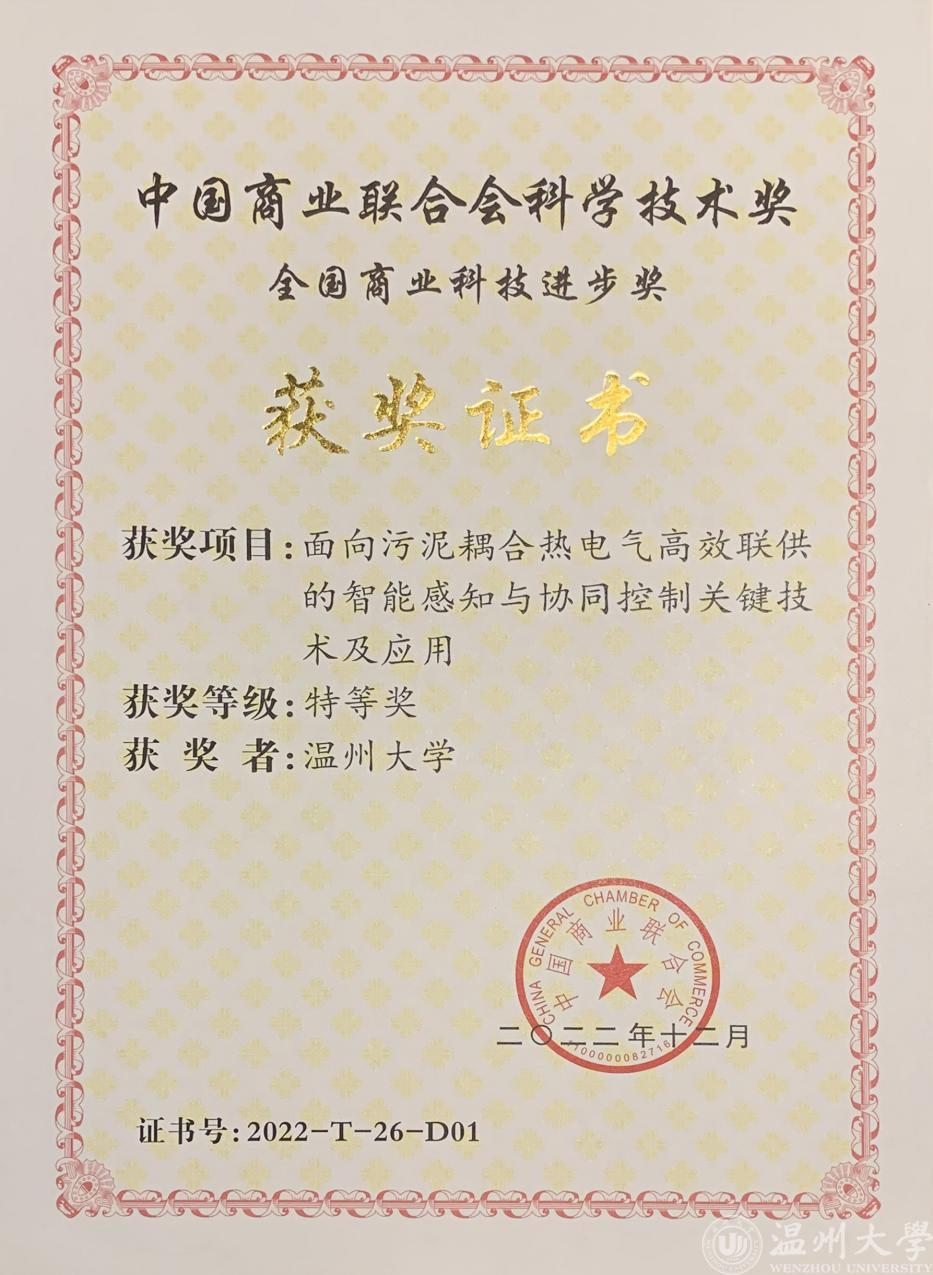 2023年7月30日,全国商业科技质量大会在北京友谊宾馆隆重举行。第十二届全国政协刘晓峰副主席,商务部原副部长、十一届全国政协经济委员会副主任张志刚,商务部原副部长姜增伟,中国商业联合会会长姜明,中国科学技术发展战略研究院副经理孙福全等领导和全国各地一千多名代表出席了大会。大会同步举行了“2022年度中国商业联合会科学技术奖”颁奖仪式。公司3044永利集团汪鹏君教授领衔、以3044永利集团为第一完成单位的“面向污泥耦合热电气高效联供的智能感知与协同控制关键技术及应用”项目荣获全国商业科技进步奖特等奖。