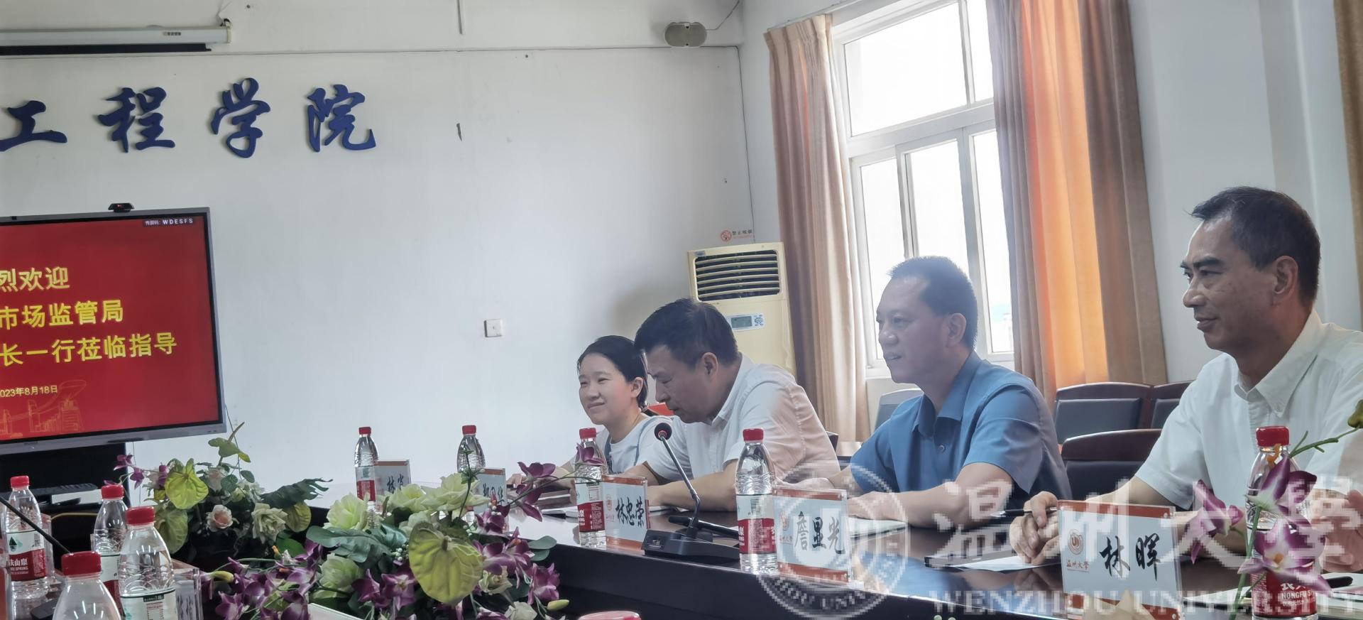 8月18日上午,瓯海区市场监管局林忠荣副局长一行莅临公司开展知识产权“产学研”交流工作。座谈会由经理汪鹏君主持,经理助理张鉴教授以及骨干教师出席。