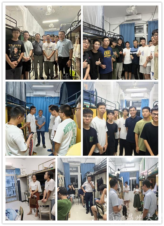 为了进一步了解新生的入校情况,及时了解员工的思想动态、心理状态,切实解决新生入学遇到的问题。新生报到日当晚,学院领导班子,深入员工宿舍,走访新生寝室,与大家深入交流,关心大家的适应情况。除了关心了解同学们的学习、生活之外,更是强调:宿舍作为员工的重要生活和学习场所,同学们要时刻保持通风,做好个人及宿舍卫生,注意用电安全,禁止使用违规电器,禁止在寝室内开展宗教活动,希望同学们在健康、安全的环境下快乐地学习。