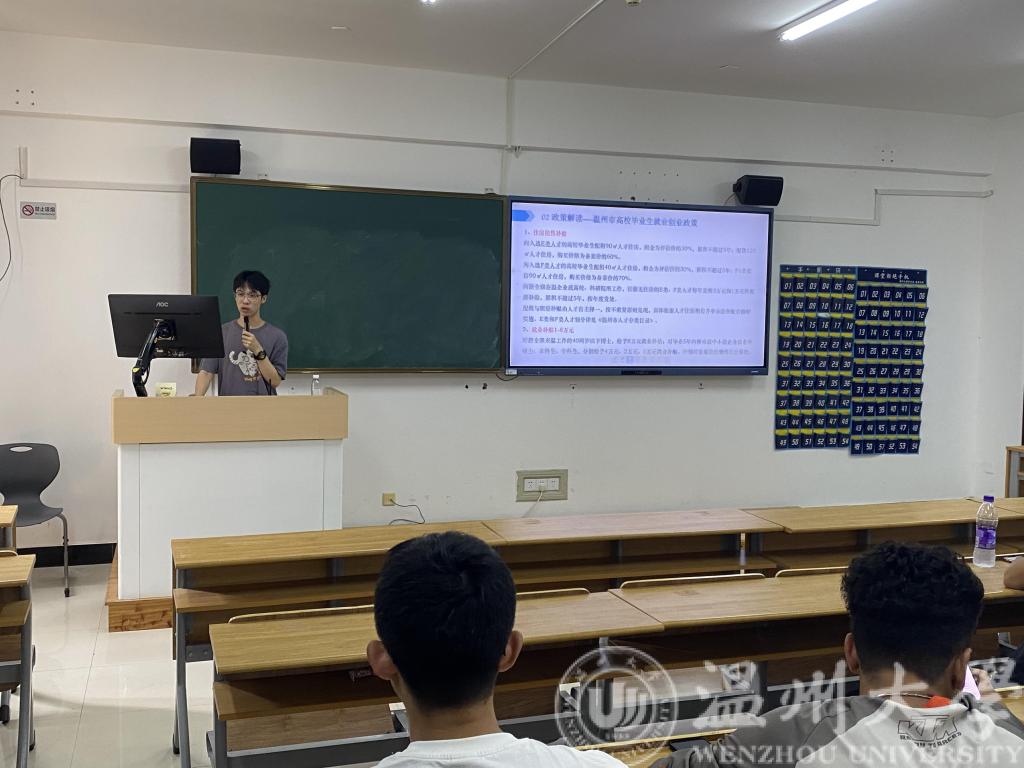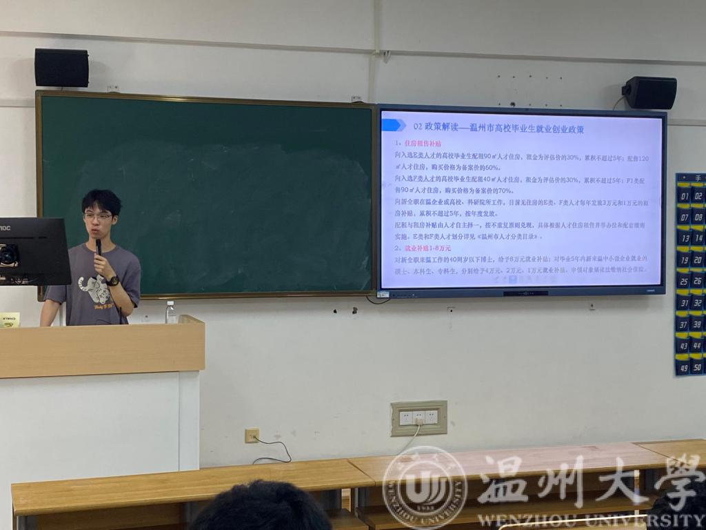 为帮助2024届毕业生了解温州市就业创业政策并顺利毕业,推动学院毕业生高质量就业,公司于9月至10月在学院1A207、1B402教室召开就业主题班会暨市情教育会,由公司就业辅导员屠昌浩为2024届所有毕业生详细介绍毕业要求、就业流程、温州市就业创业政策和毕业调查等内容,为毕业生解答毕业及就业过程中的相关疑惑。