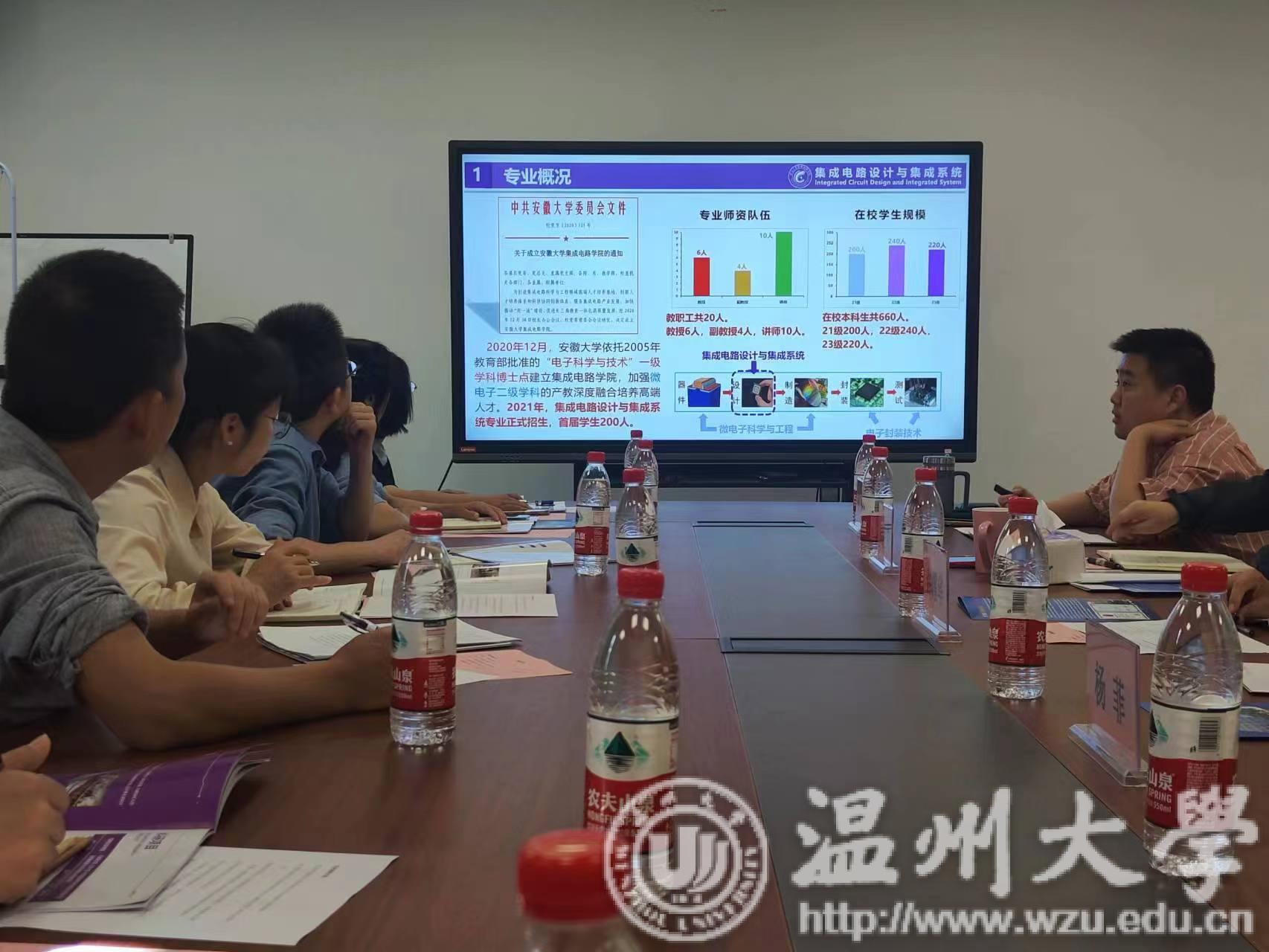 11月2日上午,团队一行抵达安徽大学。安徽大学集成电路学院许耀华书记对大家表示热烈欢迎,并简要介绍了集成电路学院的概况以及集成电路设计与集成系统专业的发展历史;学院教学副经理代月花、集成电路设计与集成系统系主任黎轩、副主任杨菲等老师先后针对工程认证毕业要求的集成电路设计与集成系统专业建设、培养方案进行了详细介绍。随后双方就人才培养特色、教师引进、课程群组的建设、专业实验室建设、专业实习、就业方向等进行了深入探讨。并实地参观考察了相关专业实验室。