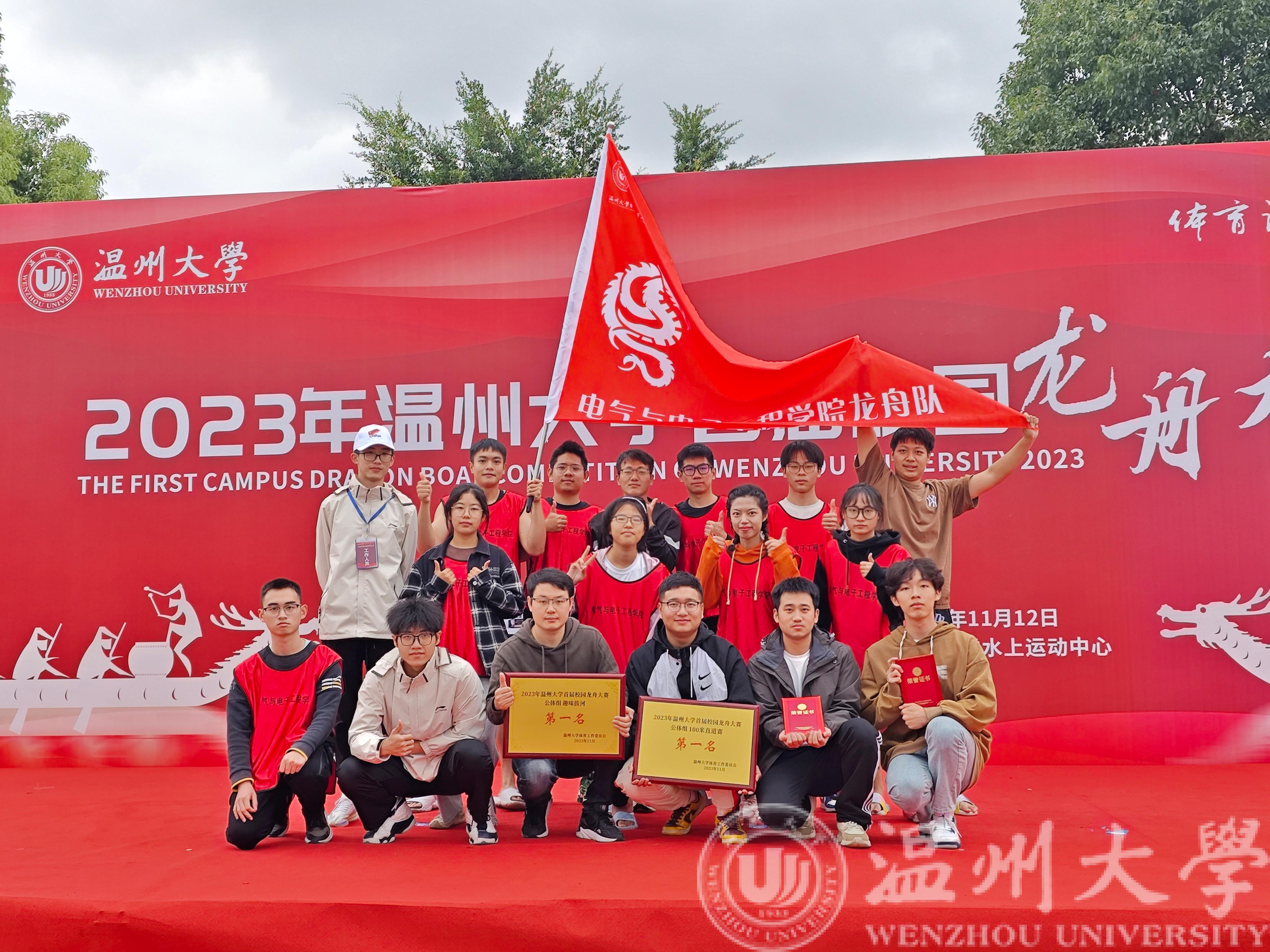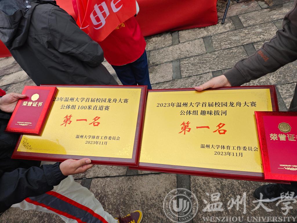 11月12日上午9时,2023年3044永利集团首届校园龙舟大赛在南校区龙舟码头举行,公司师生代表队齐心协力、奋勇争先,经过激烈角逐,公司代表队在公体组100米直道赛和趣味拔河竞技赛中均获得第一名,夺得双料冠军。