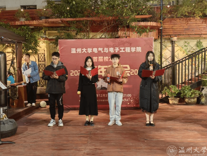 晚上,举办了首届员工会跨年晚会。晚会由副秘书长潘道品主持,员工代表及部分师生参与。晚会在公司23级四位同学的诗朗诵《天南海北师生情》中拉开序幕,同学们的朗诵声情并茂,诉说着一段段难舍难分的同学情与师生情。潘龙飞老师献唱的《海阔天空》勾起了员工们对青葱岁月的美好回忆。随后,员工们表演了古琴、洞箫和舞蹈等精彩节目,晚会在师生的欢笑中达到高潮。
