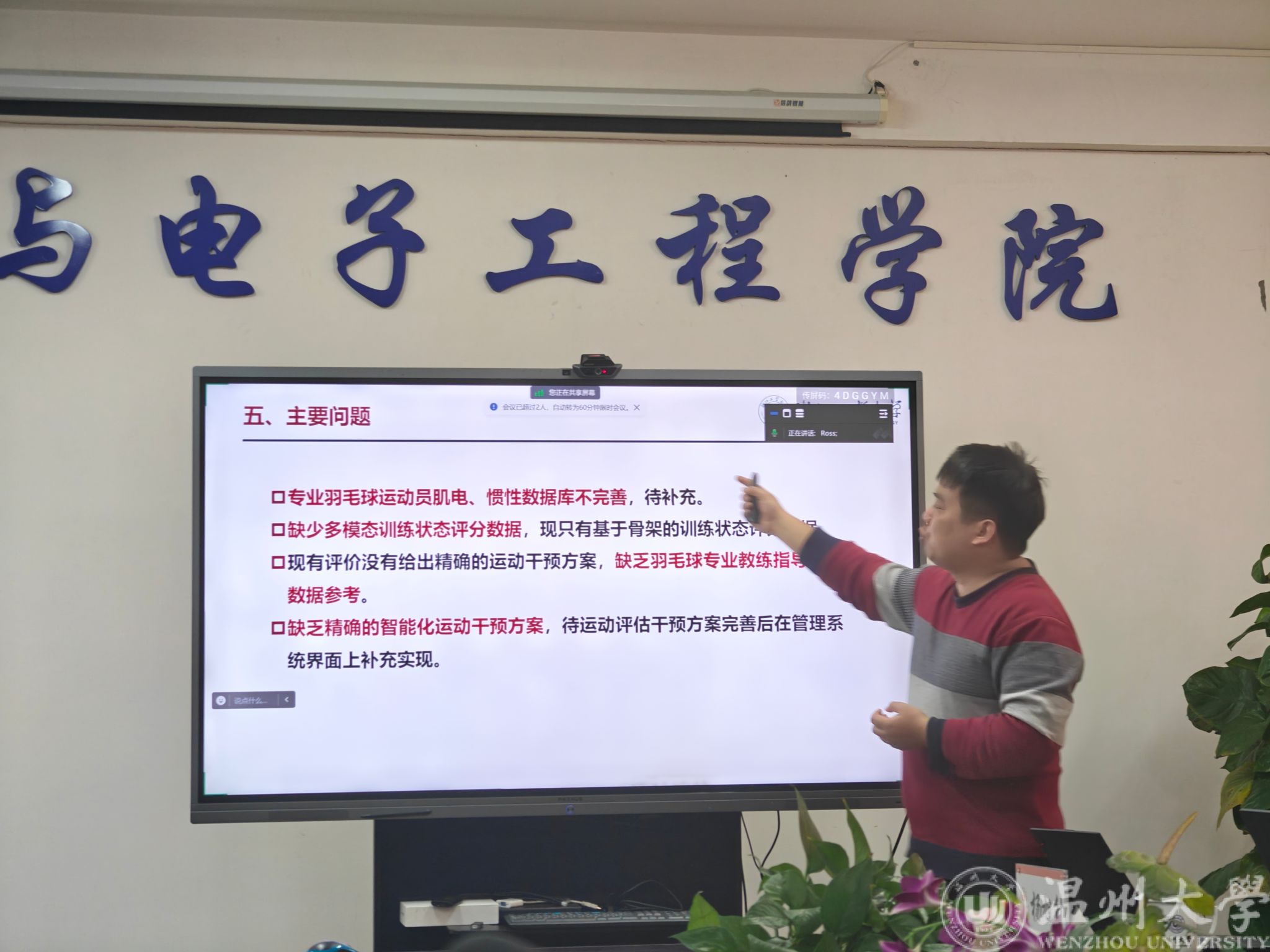 随后,王小航教授分享了在人工智能应用方面的最新研究成果和未来发展方向。杨旭升副教授作了关于浙江省“领雁”研发攻关计划项目“智能化精准运动能力检测与评估系统研制—竞技运动的智能融合检测和评估系统”的阶段性研究成果的报告。与会科研骨干和专家对羽毛球数据集采集、运动相关的预测算法的实施路径等相关议题进行了热烈的交流,也为公司人工智能应用领域科研发展带来了更多珍贵的启发。