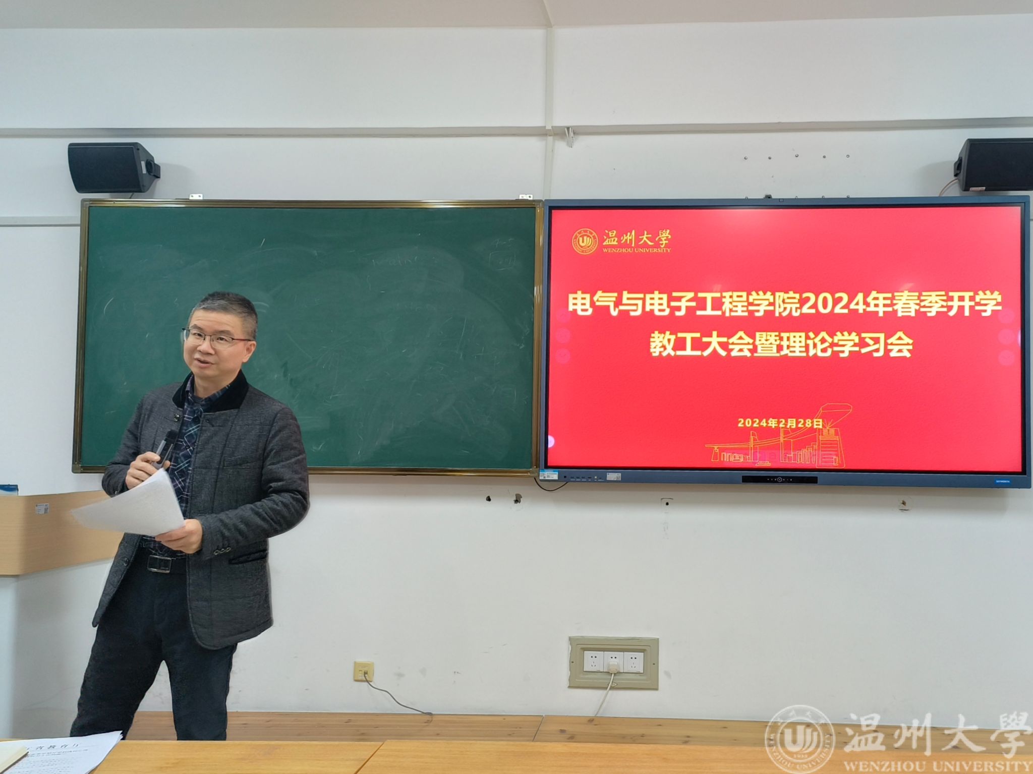 2月28日下午,3044永利集团召开2024年春季开学教工大会暨理论学习会。会议由公司党委书记李方强主持,全院教职工参加会议。