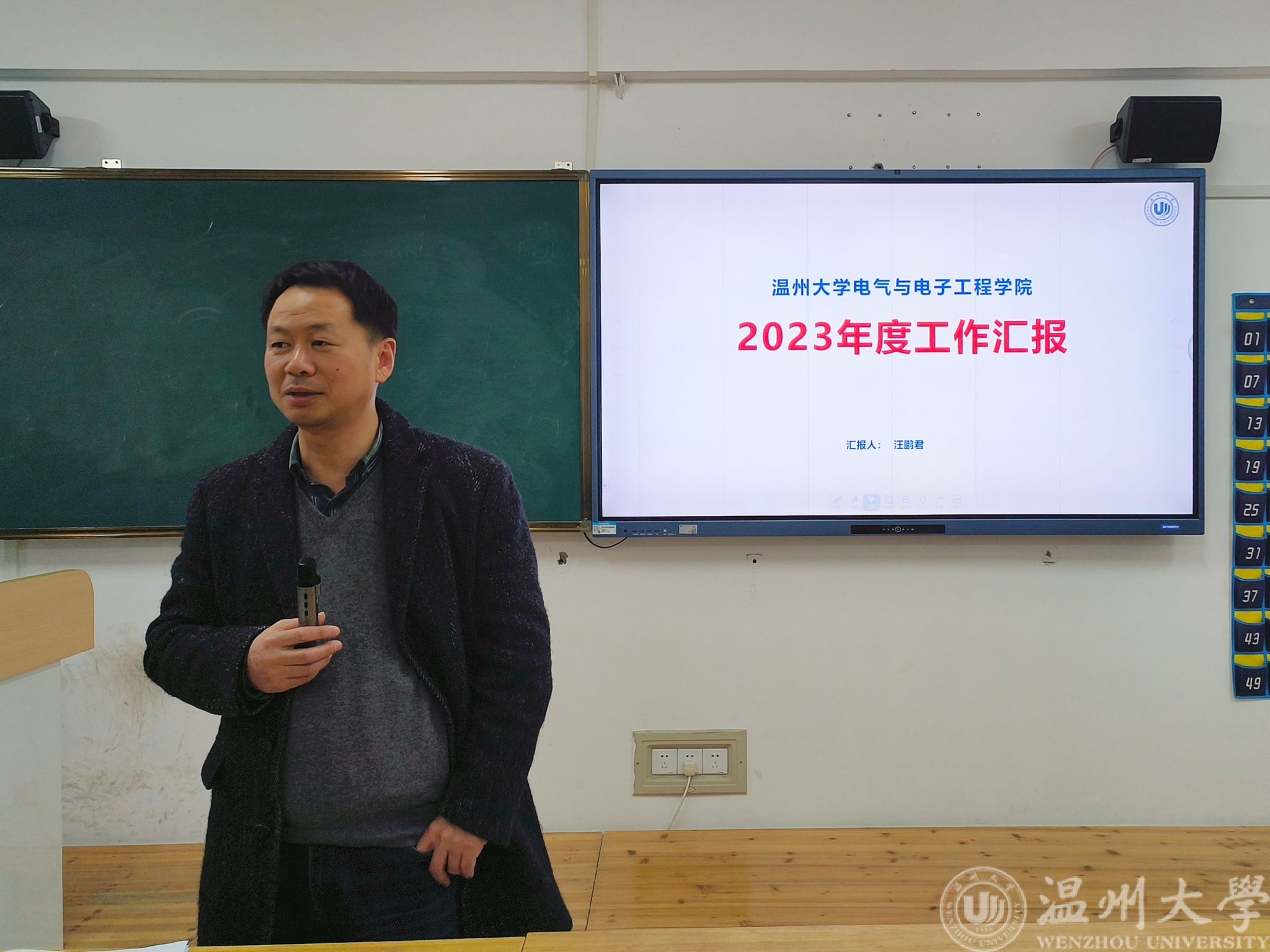 接着,经理汪鹏君从人才培养、学科科研、团队队伍、地方服务、党组织建设5个方面对2023年度工作进行了总结,并提出2024年工作计划,强调以“博士点申报及建设为龙头,党建和业务相融合,全面推进人才培养、团队队伍、科学研究、服务地方、学院文化、国际化办学等工作高质量开展,争取1-2个标志性成果”为年度目标,围绕重点项目和主要任务进行工作部署。同时还特别强调了国家基金项目、升博培育攻坚项目等方面事宜。