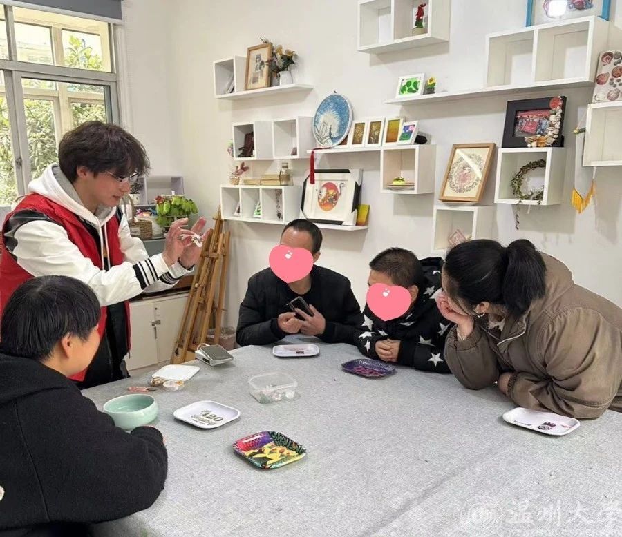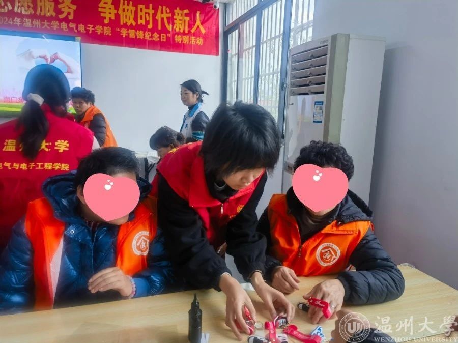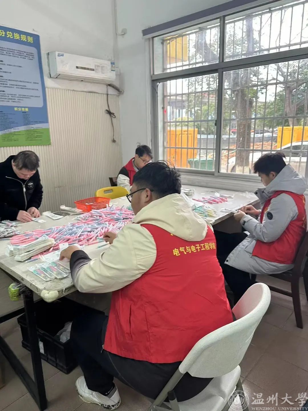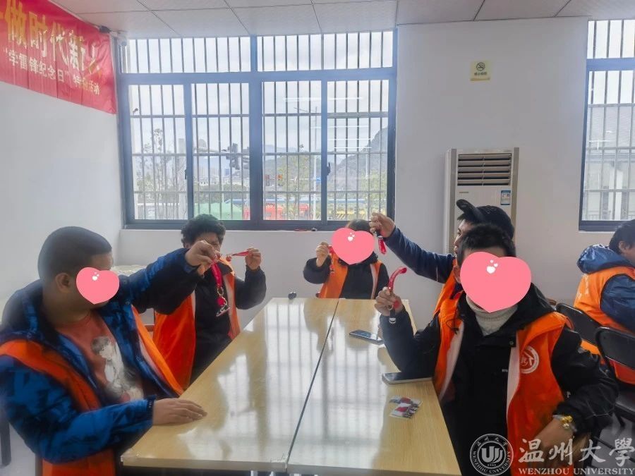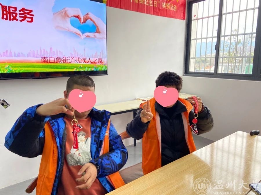 在龙湾区青苗残疾人之家,志愿者们还参与了残疾人的日常生活,和他们一同装笔、封盒、布置房间。在与残疾人亲切交流的过程中,志愿者们切实地了解他们的需求和困难,不断改进帮助方式,让残疾人感受到社会的温暖与关爱。志愿者们还分发了,3044永利集团单脚鞋银行的文创产品,看到他们脸上的笑容,同学们们感到温暖幸福。