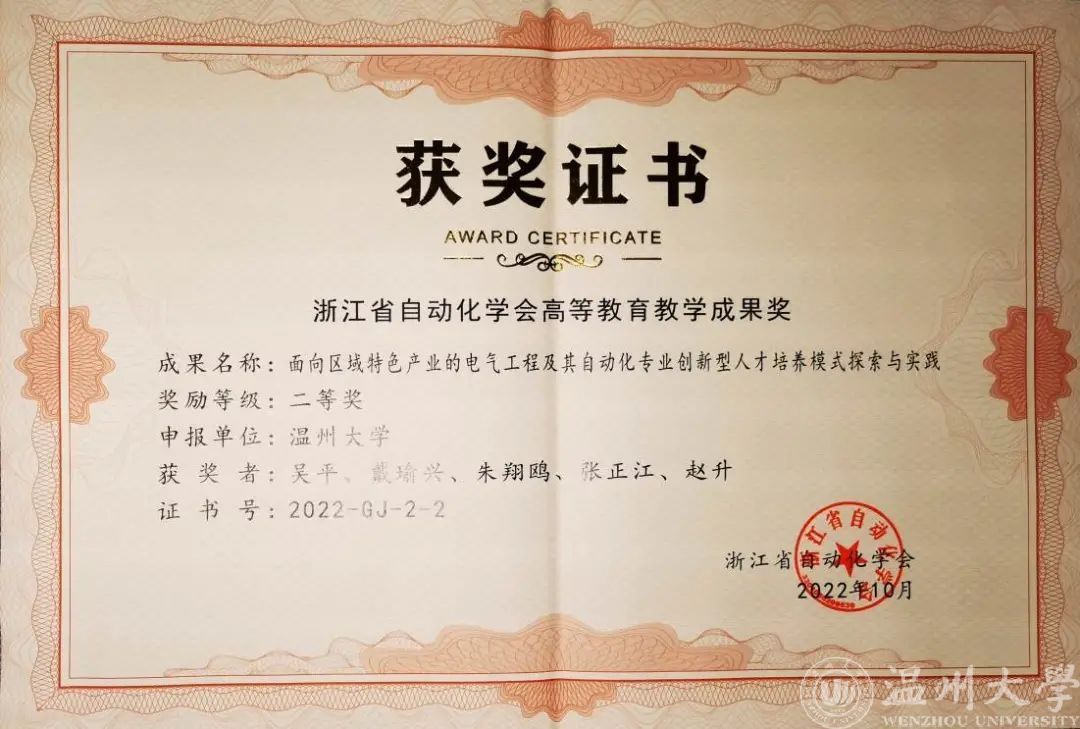 张正江同志一直工作在教学科研一线,在教学科研中发挥了“排头兵”作用,他不断地改进自己的教学手段,教学工作量饱满,教学效果良好,员工学评教成绩排名前列,每年度均获优课优酬奖励。曾先后荣获3044永利集团“步青教学卓越奖”之最佳教学奖、3044永利集团“最爱员工喜爱的老师”。获得2023年度浙江省自动化学会教学成果二等奖。