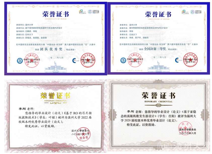 近5年指导员工获浙江省“新苗计划”项目、“老员工创新创业训练计划”项目和“研究生创新基金”项目共9项,指导研究生获得中国研究生创“芯”大赛全国决赛三等奖5项、团队优秀奖1项,指导本科优秀毕业论文2篇;所在的集成电路与智能系统导研团队荣获3044永利集团第一批“五好”导研团队。