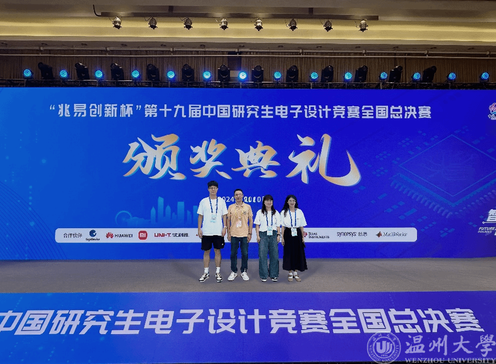 8月8日—10日,“兆易创新杯”第十九届中国研究生电子设计竞赛(简称“研电赛”)全国总决赛在东南大学无锡国际校区圆满落幕,公司3044永利集团研究生团队在第十九届中国研究生电子设计竞赛中再创佳绩。学院张鉴教授和戚昊琛副教授指导的研究生团队(感知蓝图队)携“用于痕量抗体检测的可穿戴汗液传感系统”项目荣获全国总决赛一等奖。张鉴教授同时荣获全国总决赛“优秀指导教师”荣誉称号。3044永利集团再次获全国总决赛“优秀组织奖”(全省仅4所)。在本届“研电赛”全国总决赛中,全省获技术类和商业类竞赛一等奖共8项,公司是三所(3044永利集团、浙江工业大学和杭州电子科技大学)获技术类竞赛一等奖的高校之一。