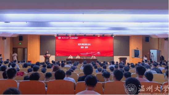 舒亮副经理致辞。他介绍了学院的办学实力和毕业生就业前景,语重心长地嘱咐新生:要心存感恩,学做真人;要保持上进,不懈奋斗;要胸怀大志,挺膺担当。他希望新生立大志、明大德、成大才、担大任,努力成为堪当民族复兴重任的时代新人!