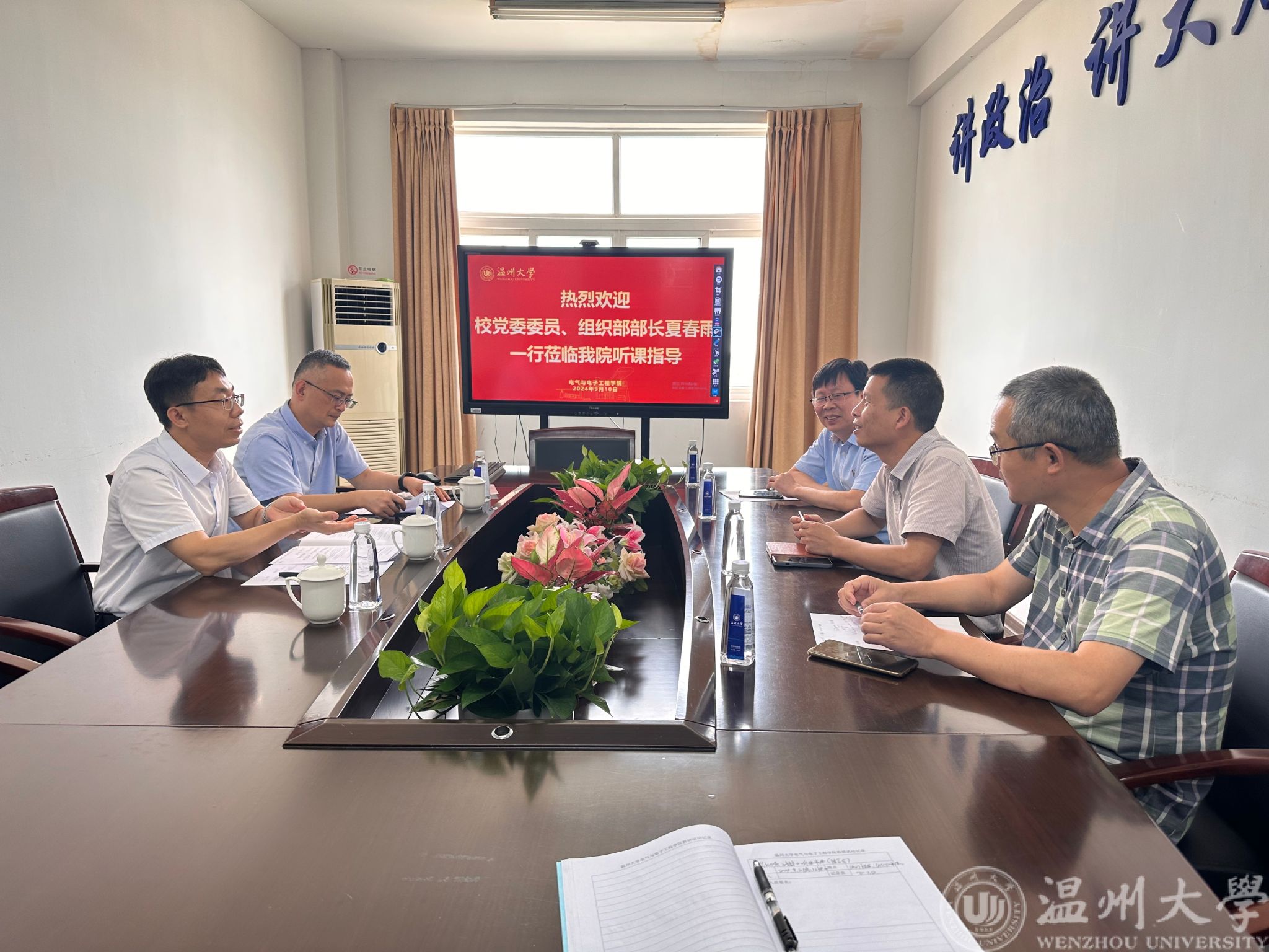9月10日教师节当天,公司党委委员、组织部部长夏春雨,机关党委书记、组织部副部长叶正飞,招标与采购中心主任杜友坚,学校督导组副组长庄友谊等一行莅临公司开展开学初听课及教学指导活动。学院教学副经理陈孝敬及学院督导陪同一起走进教室,听取了陈崇巨老师为23集电2班授课的《模拟电子技术》一课。