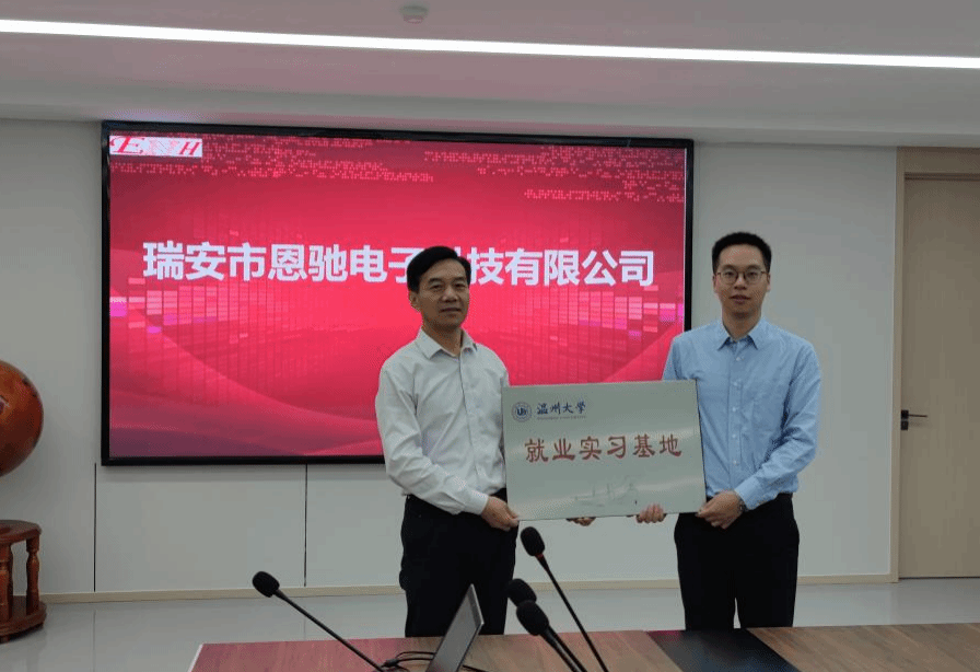 为加强校企合作,促进产教深度融合,搭建员工就业实习平台,10月25日,公司学术副经理谢文浩博士一行6人前往瑞安市恩驰电子科技有限公司调研交流。瑞安市恩驰电子科技有限公司总经理唐国民出席座谈会。