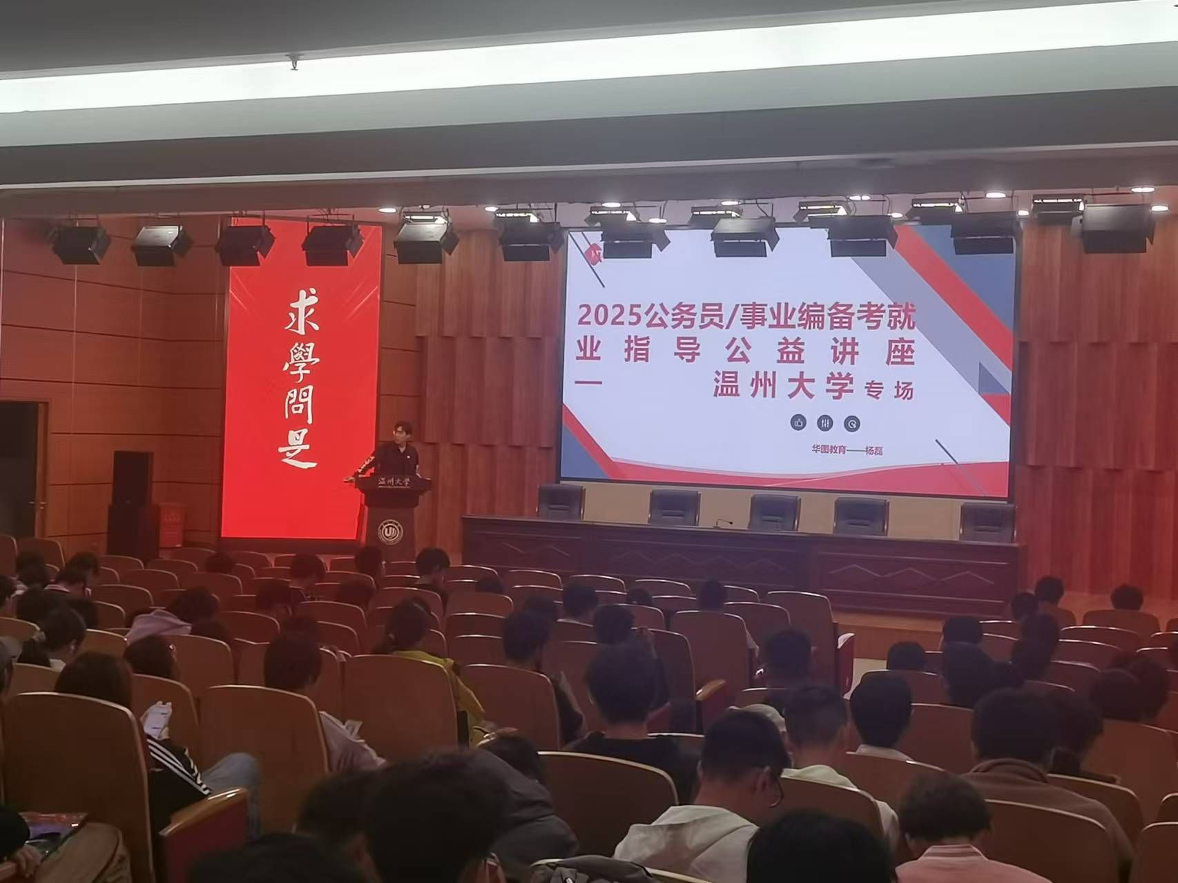 2024年11月7日,公司邀请了华图教育的资深讲师杨磊在岩松堂雁山厅为同学们带来了一场别开生面的公务员/事业编备考就业指导公益讲座。此次讲座旨在帮助同学们对考公考编有一个全面而深入的了解,为他们未来的职业规划提供有价值的参考。本次讲座吸引了公司近三百名员工参与。