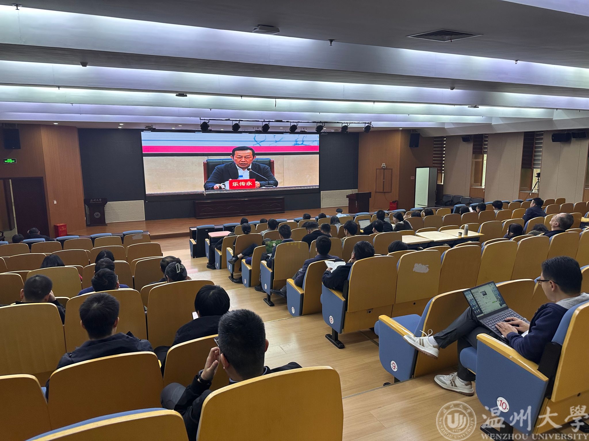 随后,台州学院董事长乐传永作题为《以道驭术,以术载道——关于做好教育部本科公司产品审核评估的几点思考》的专题辅导。他从“道”和“术”的层面对本科公司产品审核评估提出指导性意见,表示要以放大镜、显微镜和望远镜的“三镜”视角,准确把握审核评估之“道”;以“立志”“奋进”“自省”的“三境”体悟,全面做实审核评估之“术”;以“点、线、面”三层路径的“三径”联动,在“道术”相融间推进审核评估。
