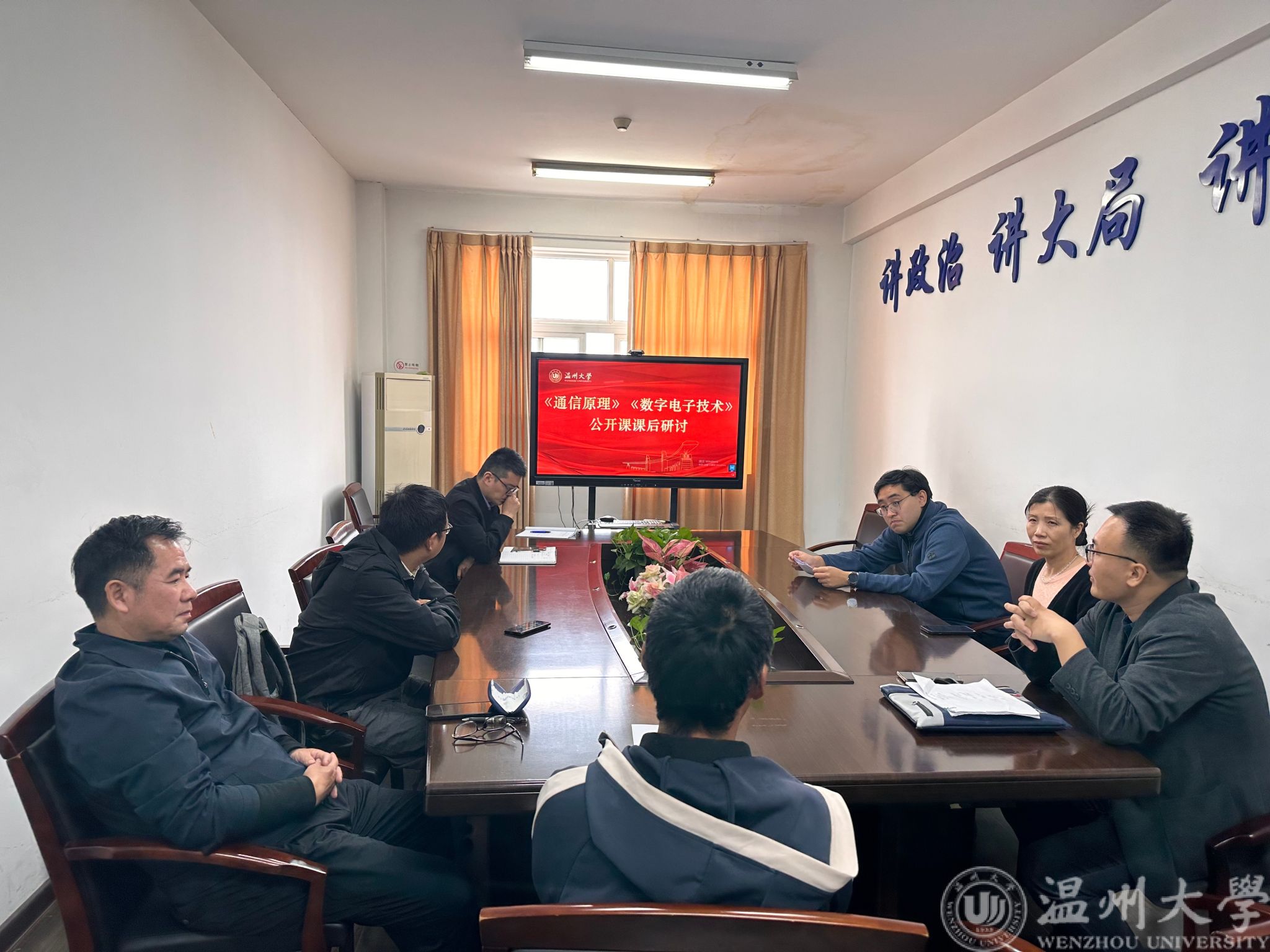 课后,老师们在1A504会议室进行了评课。大家认为几位老师的课程设计合理、节奏适中、内容生动、声音洪亮,并融入了课程思政元素,同时也对几位老师提出了利用板书开展教学、结合实际案例进一步丰富内容、课题环节增加员工的参与性等建议。