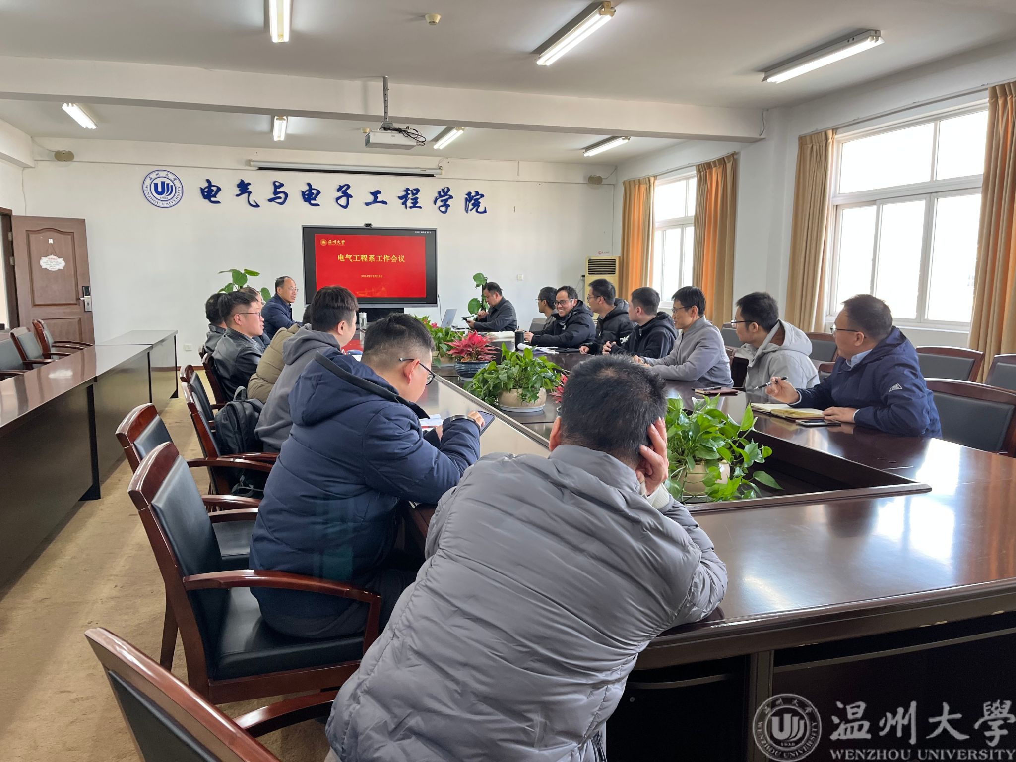 2024年12月18日下午,电气工程系召开工作会议,会议由电气系主任吴平主持,学术副经理谢文浩、系书记张正江、学科带头人郭凤仪、系副主任闫正兵,以及电气系全体教师参加会议。