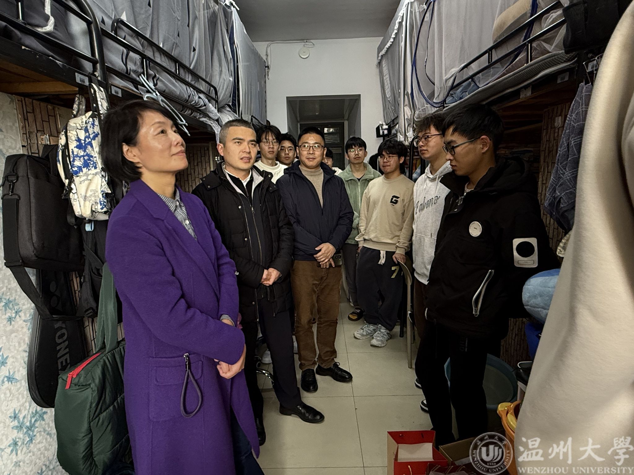 走访期间,陈文远书记亲切关怀同学们的生活,询问同学们假期体验及对新学期的想法规划,她希望同学们珍惜大学时光,为精彩人生积蓄能量。在谈及新学期的课程学习时,舒亮副经理语重心长地叮嘱:大二是大学里很重要的一年,课程的难度和学习的压力都会逐渐增大,要做好吃苦和攻坚的准备,同时他鼓励同学们积极参加学科竞赛,提升综合素质。在谈到寝室建设时,翁浩副书记讲到,室友间要珍惜同窗情谊,彼此扶持,增加交流,共同进步。老师们还着重强调,要始终将安全置于首位,严禁在寝室进行宗教活动,打造整洁有序的宿舍卫生环境,为学习与生活筑牢坚实根基。