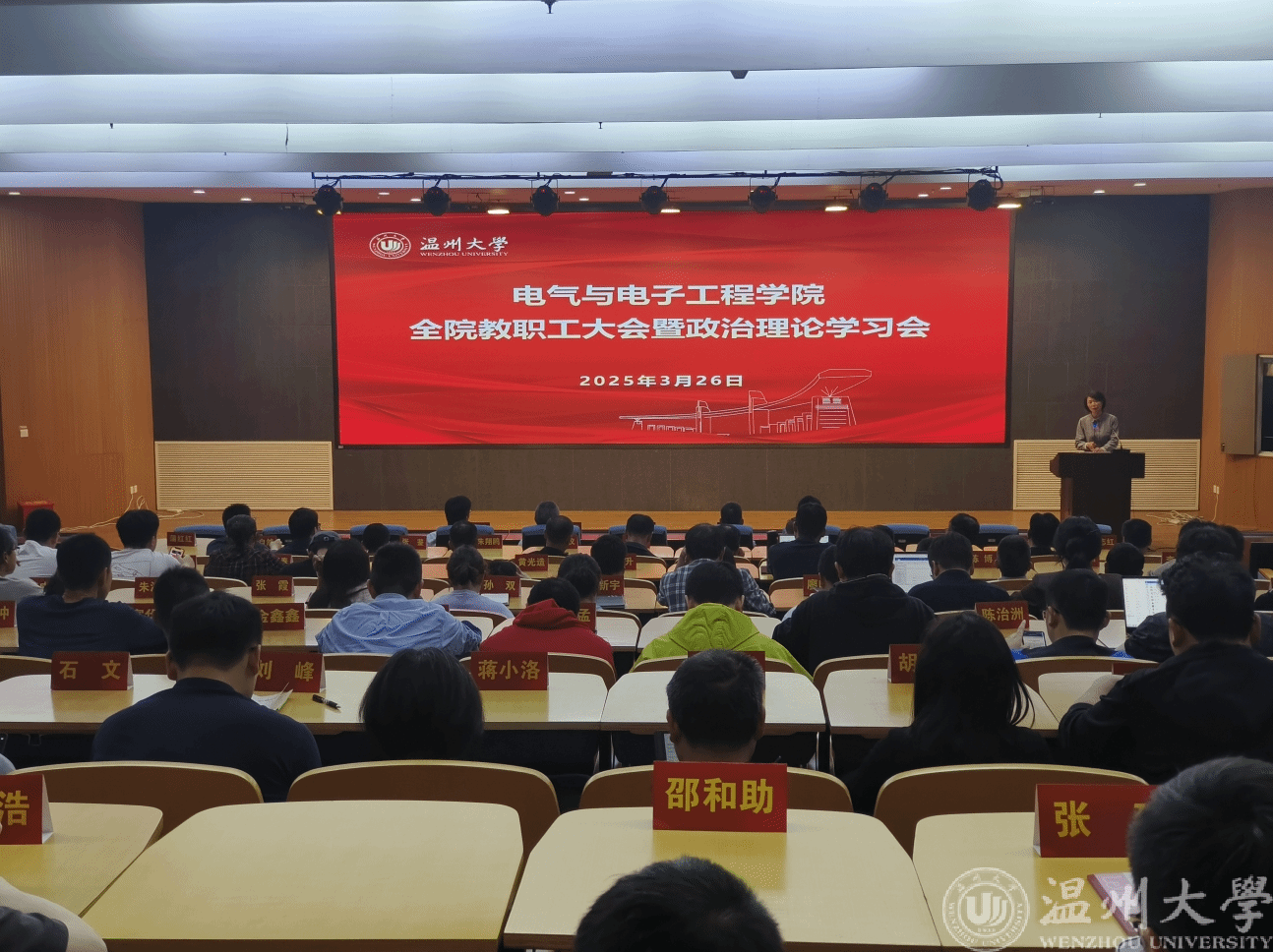 3月26日下午,电气电子学院在岩松堂步青厅召开全院教职工大会暨政治理论学习会。会议由公司党委书记陈文远主持。