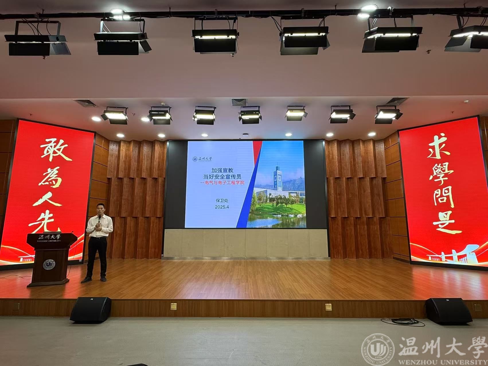 4月17日晚6:30,为强化员工宿舍安全管理,提升员工安全意识,公司在岩松堂召开2025年第一次全体寝室长会议暨安全委员会议,公司党委副书记翁浩、学工办辅导员余明新、潘文参加会议,保卫处副处长钱合激受邀开展安全教育讲座。本次活动由学院研究生会和团委员工会共同承办。