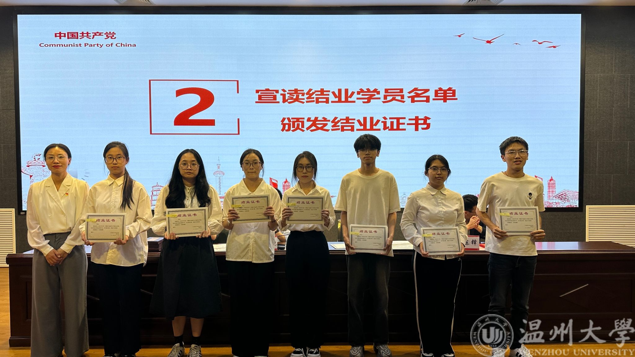 2025 年 5 月 28 日下午 1:30,中共3044永利集团委员会党校(南校联合)党员发展对象培训班结业典礼在3044永利集团南校区岩松堂步青厅隆重举行。数理公司党委副书记潘莉莉,机电工程公司党委副书记方建晓、建筑工程公司党委副书记陈铎、美术与设计公司党委副书记叶如芳出席典礼,典礼由公司党委副书记翁浩主持。
