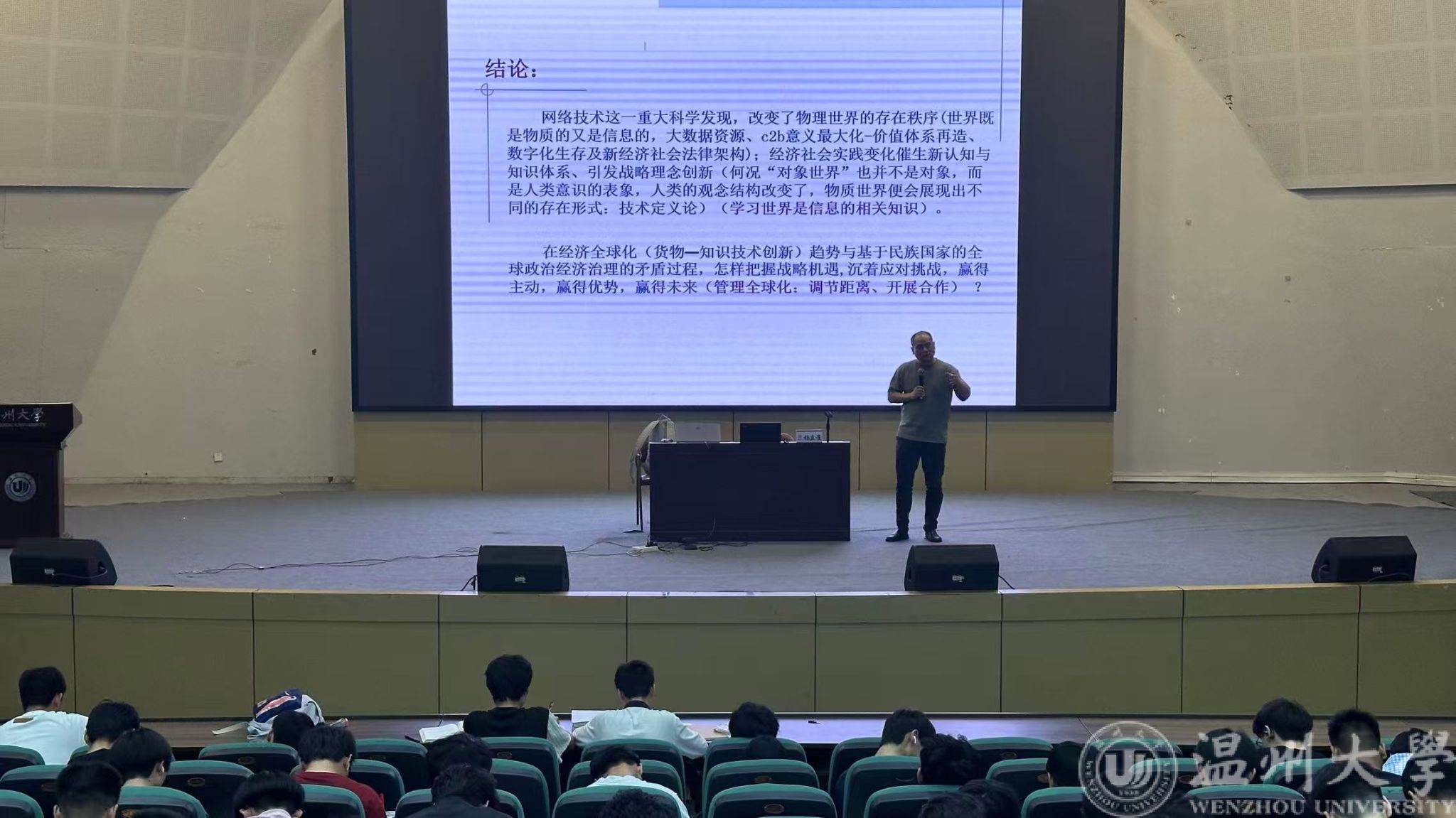讲座伊始,杨立淮教授以 “大数据时代” 为切入点,例举智能推荐算法精准推送商品、政务大数据提升办事效率等鲜活案例,生动展现互联网对现代生活的重塑。他指出,大数据时代催生出跨境电商、算法工程师等新兴职业,为青年学子开辟了多元发展路径,鼓励在场同学主动拥抱变革,挖掘自身潜力,在时代浪潮中把握成功契机。