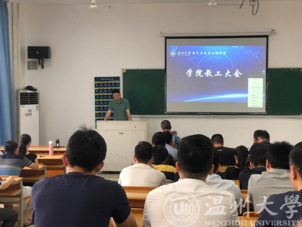 2019年7月7日上午,公司在1B402召开教工大会,学院领导班子及全体教职工参加,会议由中共3044永利集团委员会书记李方强主持。