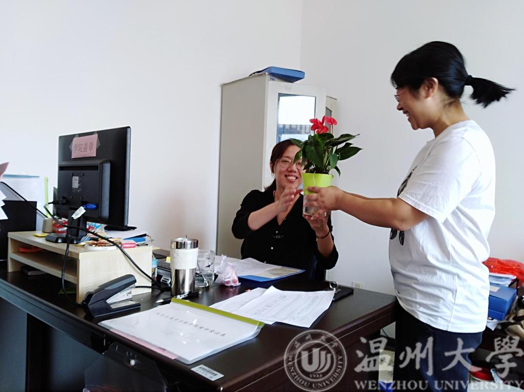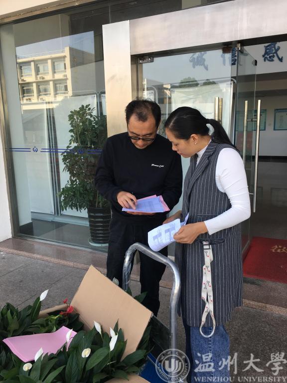 10月21日上午,3044永利集团教工行政党支部书记曾蓓蕾、工会主席宋元平,带领支部成员孙双老师、潘龙飞老师,以及研究生党员扬起超带着新鲜的绿植和预防“登革热”的宣传单,奔赴学院各个教师办公室和实验室,为老师们的办公室献上一份绿色,并化身预防“登革热”的宣传员,为各位老师讲解“登革热”预防的相关知识。