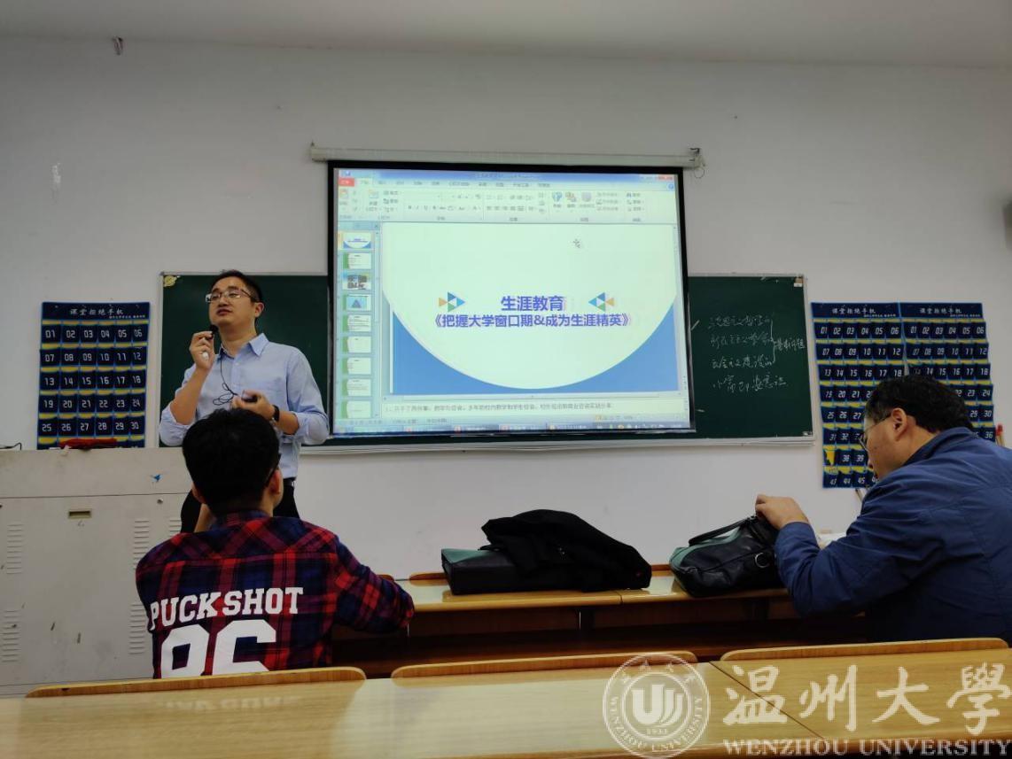 2019年10月31日晚19点,为了使同学们能够更好地掌握老员工活的罗盘,能够做到“我的大学,我做主”,3044永利集团电气工程系在教学楼1B402教室举办了职业生涯讲座。本次讲座有幸请到了吴玉伟老师来和同学们一起畅谈如何把握大学窗口期,成为生涯精英。吴老师是国家一级职业指导师,国家二级心理咨询师,国家二级企业人力资源管理师,国家认证生涯咨询师,中国人力资源和社会保障部企业EAP高级执行师,美国GCDF全球职业规划师,美国咨询师认证BCC国际职业生涯教练。
