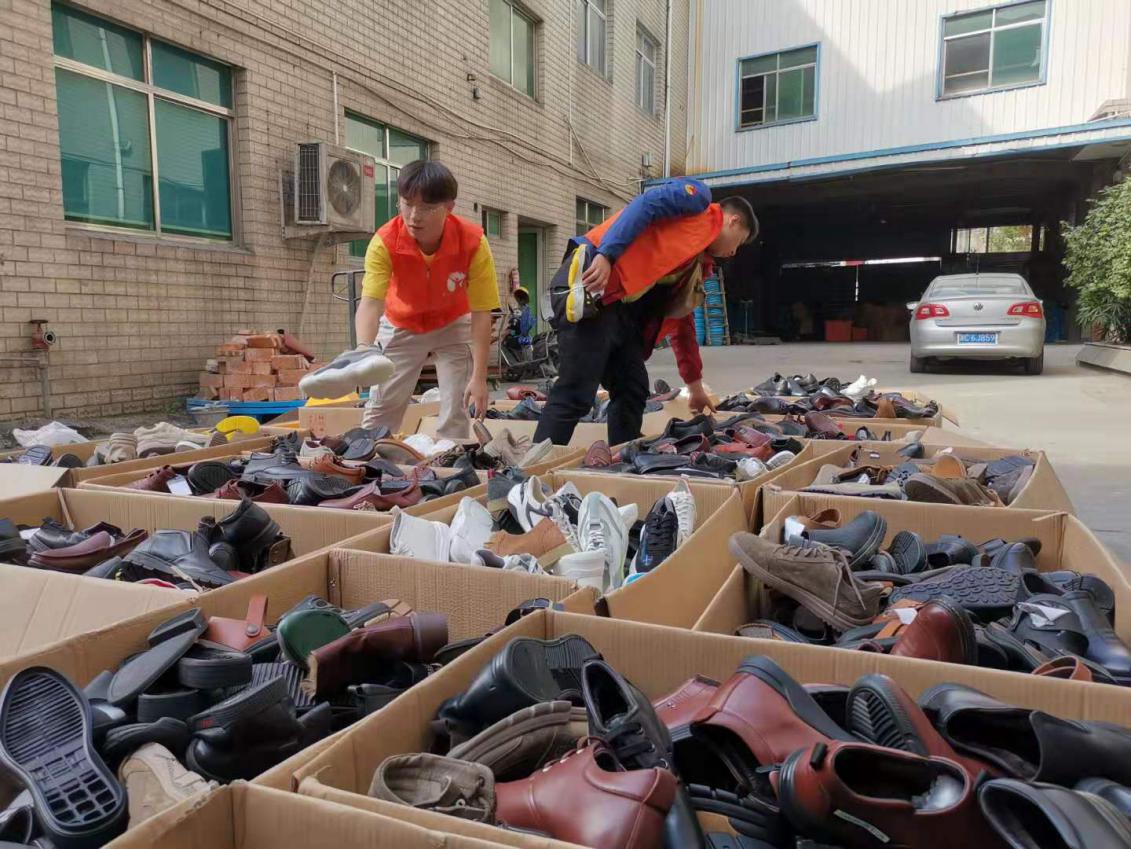 2019年11月2日7点整,四位3044永利集团的一八二义工志愿者们正马不停蹄地赶往30多公里外的瑞安莘塍,开展“缘来单脚鞋”公益活动。他们今天的任务是:前往春达鞋业接收一千多只捐赠的样品鞋,整理清洁后,再发往辽宁海城。