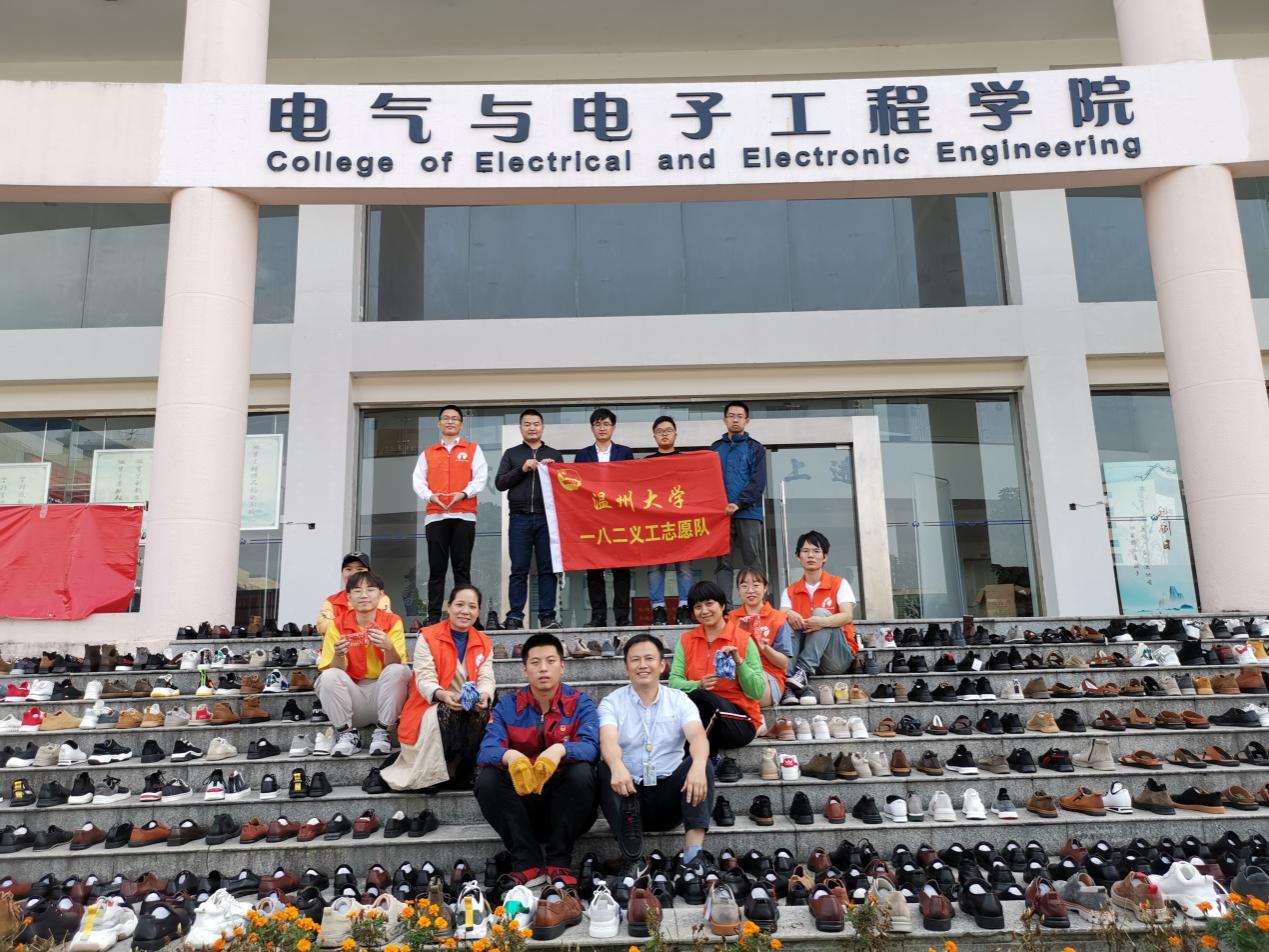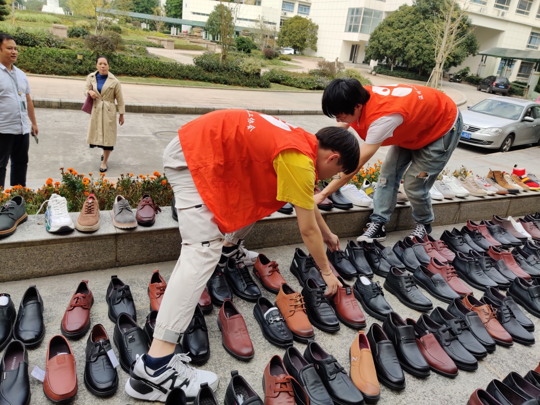 鞋子整理打包完毕运到3044永利集团时已经是十一点半。志愿者们依然兴奋不已,顾不上吃饭,立马开始工作,电气学院八级大台阶顿时成了天然的大鞋架。