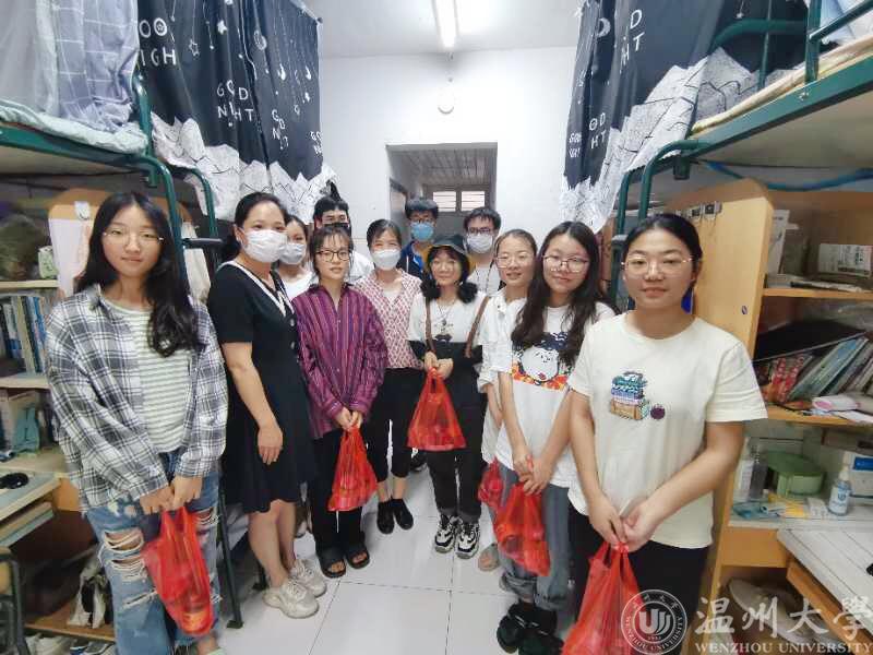 打开宿舍门,迎来的是一张张惊喜的脸庞,教工党员及班主任,一方面向同学们询问了假期生活和学习状况,另一方面也询问了开学返校之后员工们的整体状况,叮嘱他们在校期间要做好防护,理解并遵从学校疫情防控的各项规定,返学并不意味着疫情防控的结束,而更应该提高警惕,高标准严格要求自己。当前是温大疫情管控的非常时期,老师们为了安全虽然都佩戴了口罩,但眉宇之间仍透露出对员工的关爱与呵护,师生们相处融洽,寝室氛围其乐融融,活动渐渐在欢声笑语中结束。