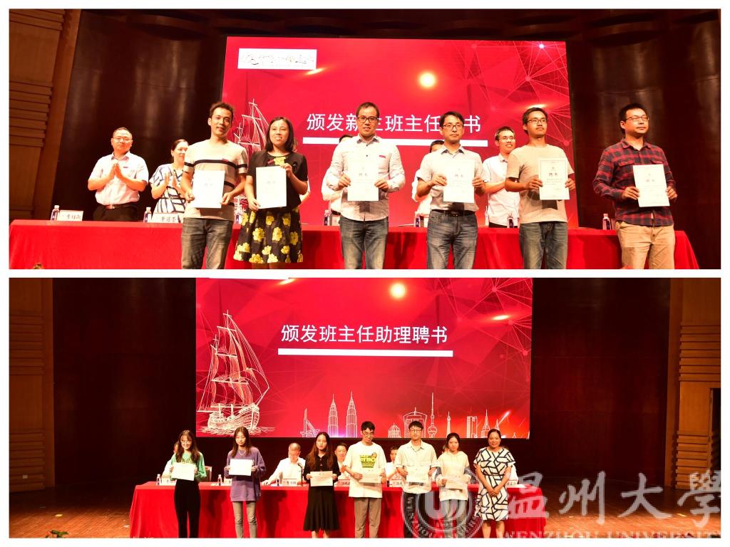 紧接着,颁发2020级新生班主任聘书,各位班主任依次上台领取聘书。董长昆教授作为教师代表发言,董长昆教授的用公司已毕业员工的事例,鼓励新生们勤学奋进、敢为人先,言语之中无不饱含着对新生的殷殷期盼。