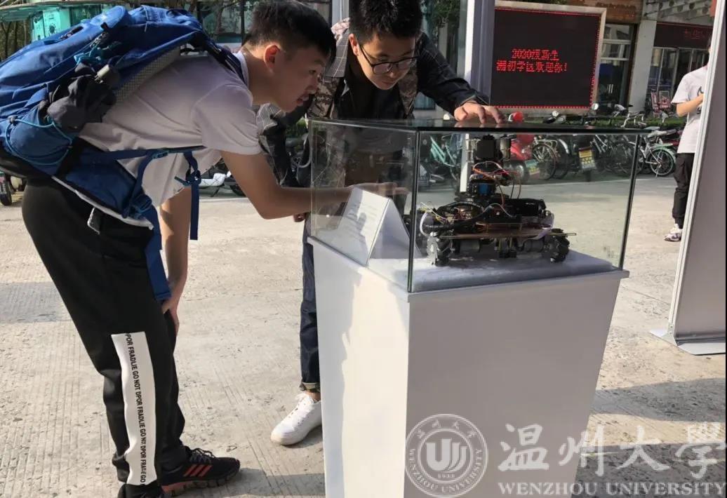 为让各位小萌新能够在报到当天对学院有进一步的了解,在迎新报到点特别安排放置了四个展示柜,展示柜里放了四个学院公司学子自己设计制作的智能车、微电网模拟系统等作品,吸引了众多新生和老师驻足观看!