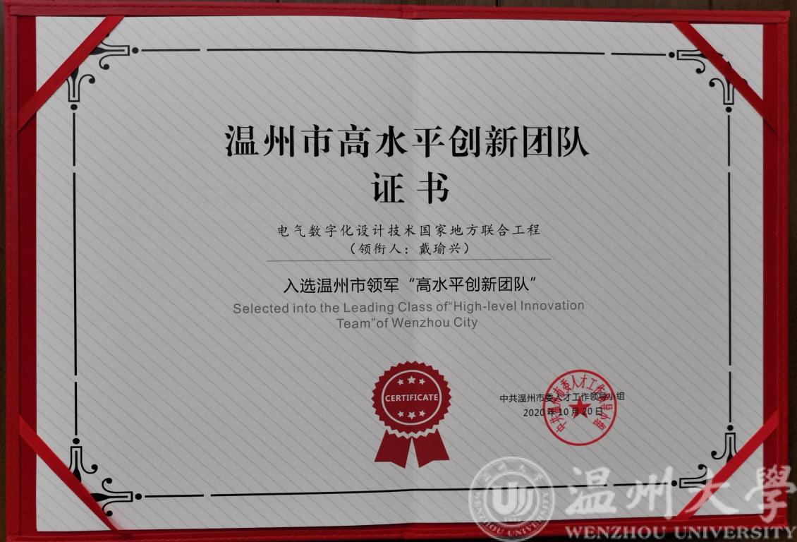 近日,温州市委人才办公布了2020年温州市重大人才工程入选名单,公司戴瑜兴老师带头的电气数字化设计技术国家地方联合工程团队入选2020年温州市领军“高水平创新团队”,吴桂初老师入选温州市“高层次人才特殊支持计划”杰出人才。