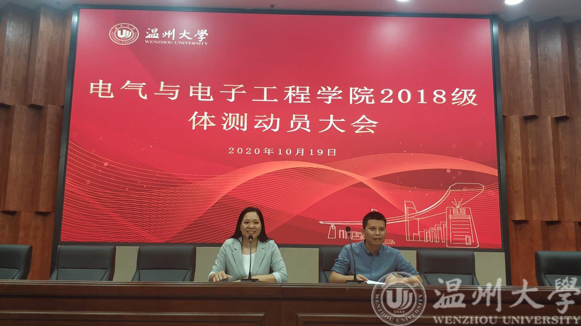 为更好的迎接本次抽测,学院领导高度重视,10月19日专门召开2018级全体同学体测动员会,学院教学副经理陈孝敬老师、学院副书记曾蓓蕾老师对体测相关注意事项、学院相关政策给予说明。同时前期对接体育健康学院对于部分困难员工进行精准帮扶训练,18级班主任、学工办辅导员积极参与帮扶训练工作,齐心协力助力本次抽测工作。