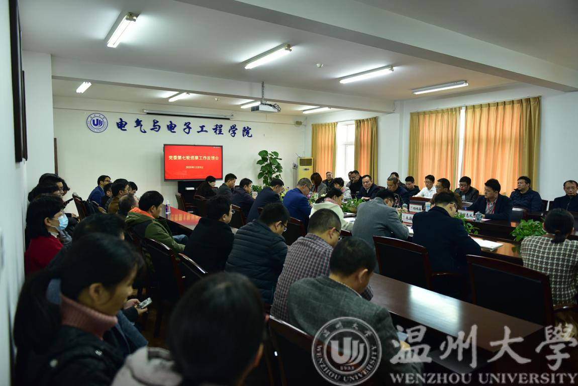 方建敏在反馈报告中对电气电子学院进行了总体评价,指出2019年6月至2020年10月期间,学院认真贯彻落实学校三大目标与七大战略,新增了中国专利奖等一系列重要奖项,顺利通过工程教育认证,成立智能锁具研究员和乐清工业研究院等。同时指出巡察中发现的问题:包括学院落实立德树人的根本任务举措力度不够、团队力量薄弱、人才梯队有待加强、教师在就业指导方面引路人作用发挥不够、学院监督体系不健全、师生理论学习自觉性不够、基层支部建设有待加强等、信息公开执行不到位等。最后方建敏给予了学院几点建议与具体要求:包括坚强党的建设、深入理论学习;突出政治建设、推进主题教育成果转化;落实从严治党、明确二级党委责任。